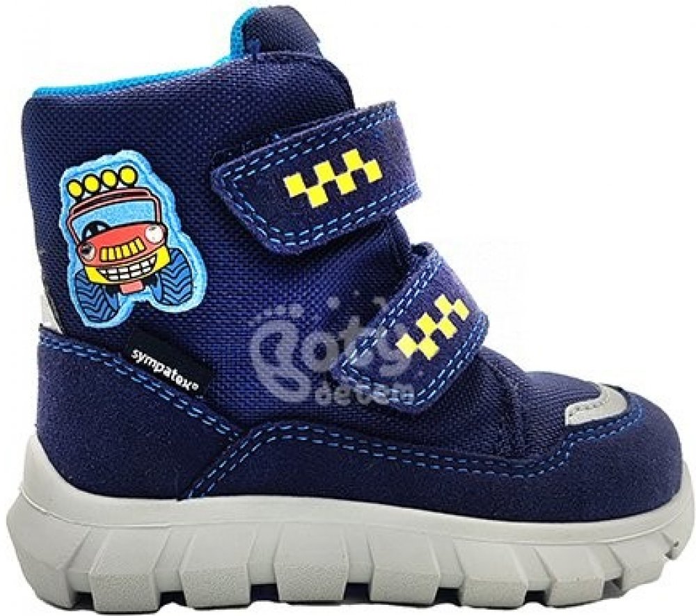 Zimní zateplená obuv s membránou SympaTex a led aplikací - ozdobné aplikace blikací světla autíčka. Svršek obuvi - syntetika. Podšívka obuvi - textil - kožíšek. Vyjímatelná stélka. Botičky s prostornou špičkou - prsty mají prostor, aby mohly zdravě růst. Nejnamáhanějším místem botiček je špička a pata, proto jsou boty opatřeny výztuží, která chrání obuv před okopem a rychlým opotřebením. Zapínání ...