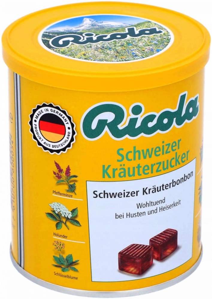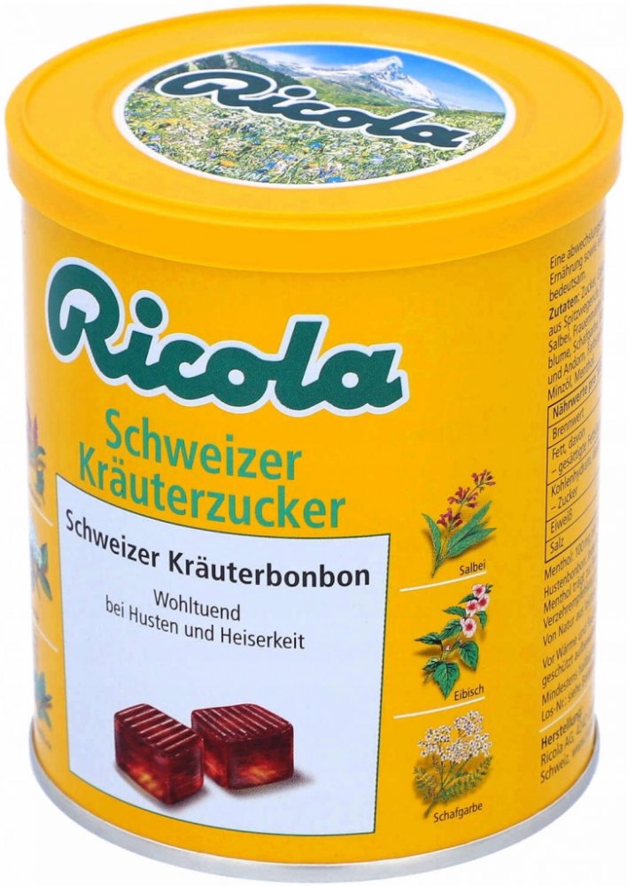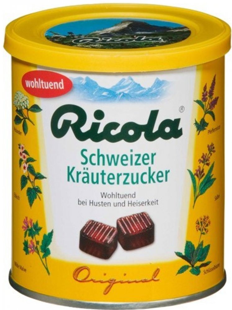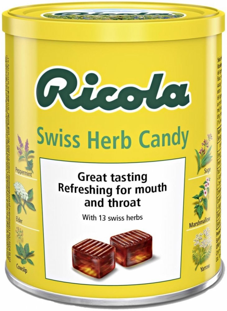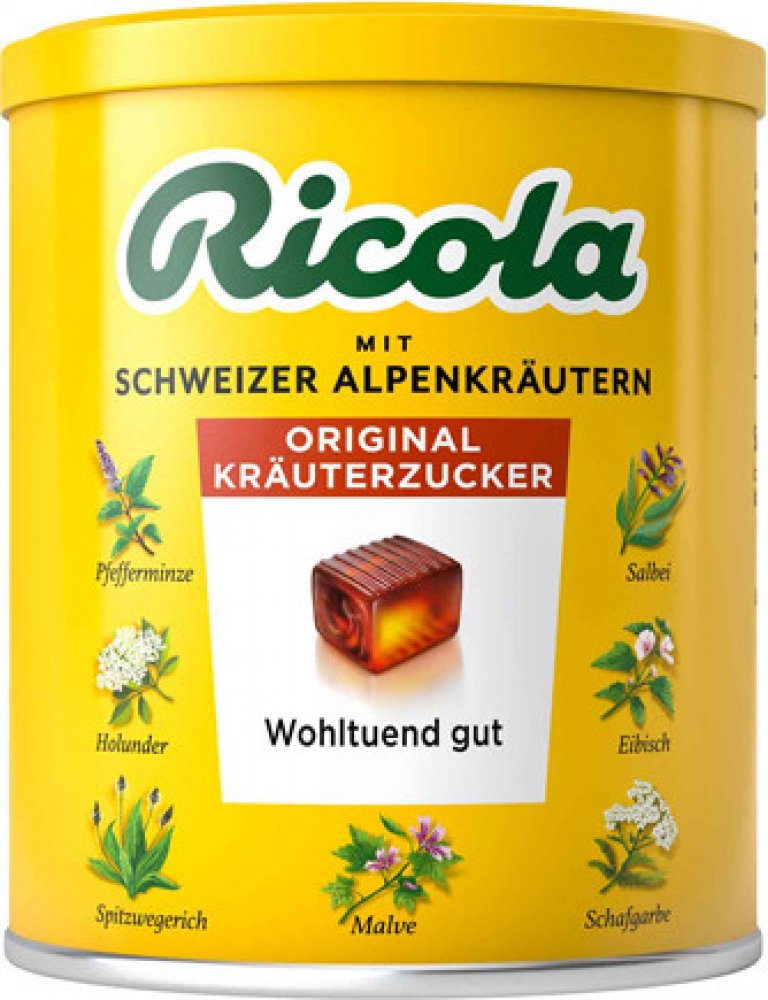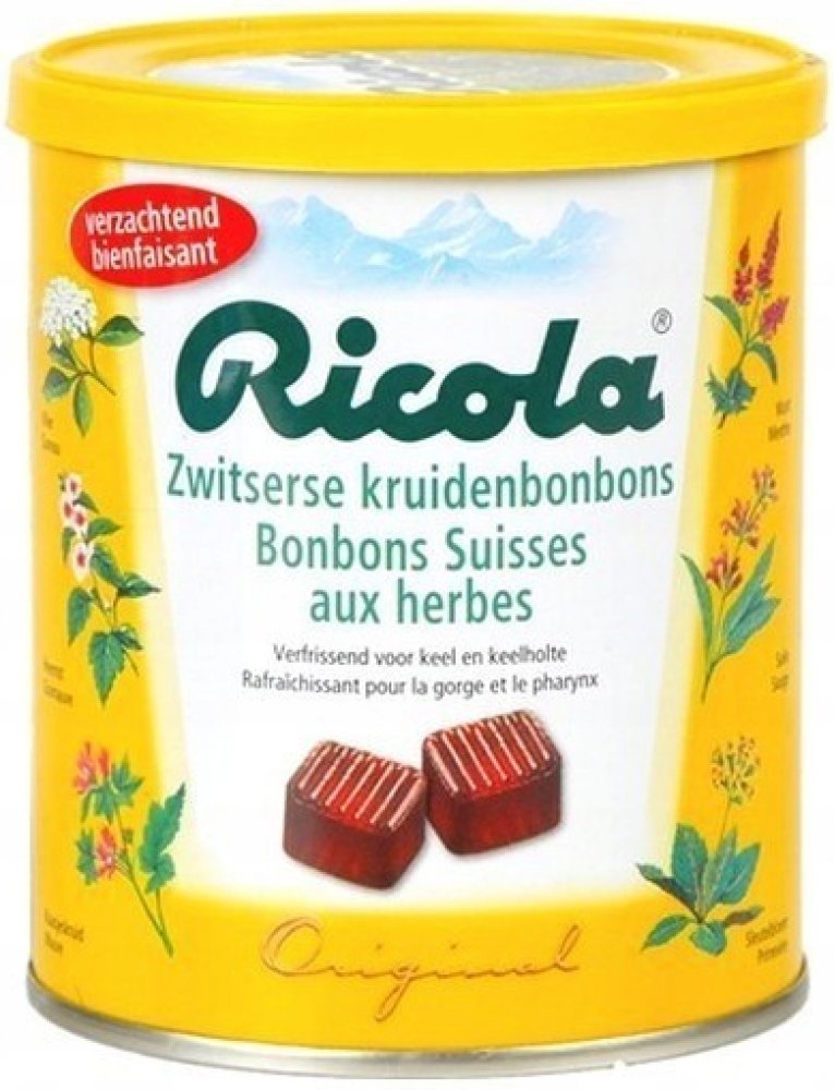 Švýcarský bylinný originál Ricola obsahuje sílu vytaženou ze 13 bylin. Tento klasický exemplář mezi výrobky Ricola se vyznačuje svým hranatým vzezřením a jemnou bylinnou chutí. Už 75 let připravuje Ricola podle téhož receptu směs 13 hodnotných bylinek pro své bylinné speciality ze Švýcarska: směs bedrníku, květu černého bezu, rozrazilu, máty peprné, šalvěje, prosperníku, tymiánu, kontryhelu, jablečníku, jitrocele, prvosenky jarní, řebříčku a slézu. Tuto jedinečnou směs oceňují spotřebitelky i spotřebitelé celého světa při nachlazení, kašli i chraptění.Recepty těchto chutných bonbonů jsou sestaveny z bylin vypěstovaných ve švýcarských horských oblastech podle zásad přírodní čistoty, bez použití chemických prostředků.