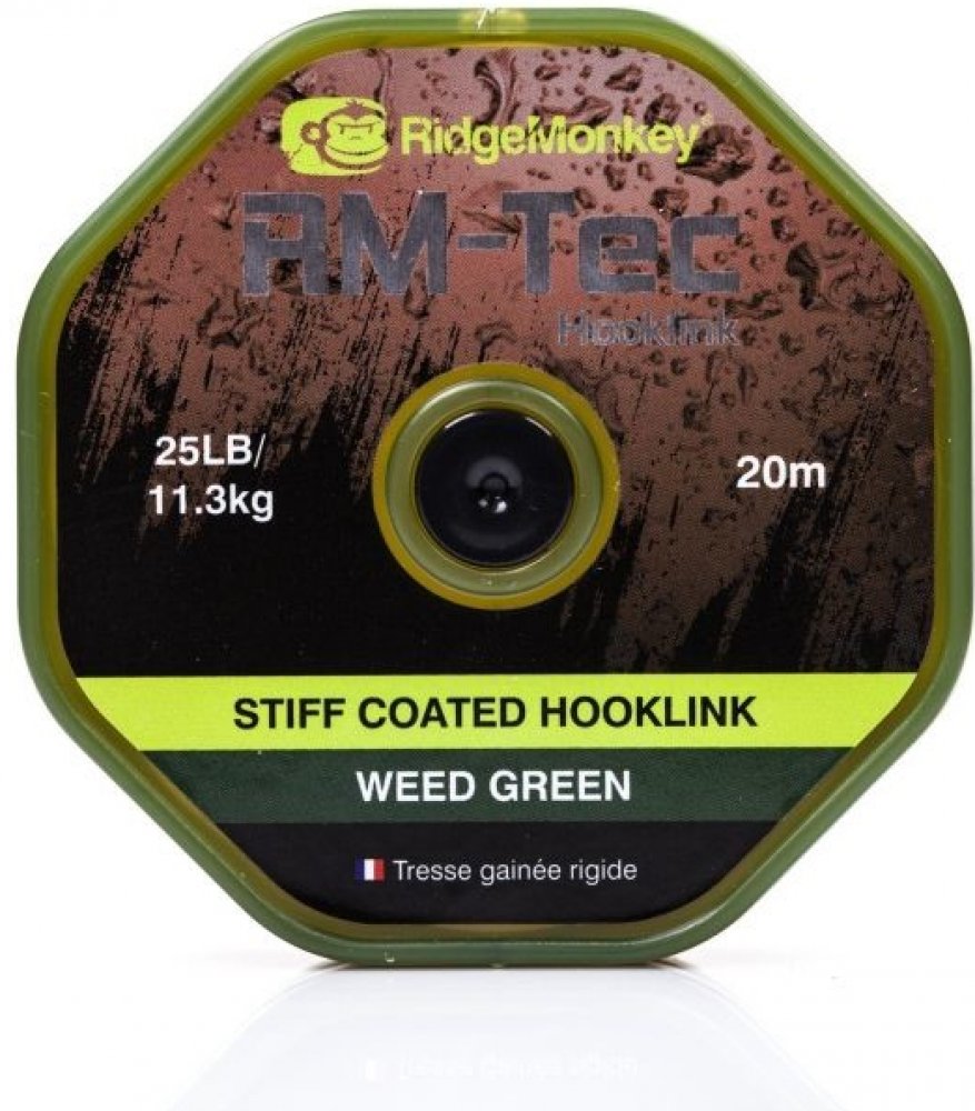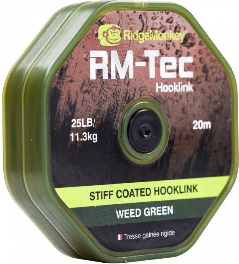 RidgeMonkey šňůra RM Tec Stiff Coated Hooklink Zelená 20m 25lb