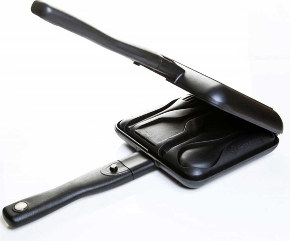 To nejlepší jsme ještě vylepšili! Super kompaktní, odlehčený s unikátním novým odnímatelným systémem, díky kterému můžete nyní používat obě pánve nezávisle na sobě! Stejně jednoduše můžete nyní odejmout rukojeti, které se bezpečně ukládají dovnitř toasteru, jednoduše z druhé strany vložené kulinářské sady nádobí, která je součástí každého balení. Nelepivý teflonový povrch, který je vhodný pro přípravu různých pokrmů, od obyčejných toastů, až po plnohodnotné jídlo! Nový toaster Connect Compact posouvá outdoorovou gastronomii zase o třídu výše!
