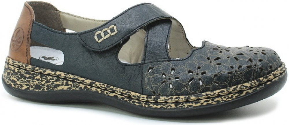 Oblíbený model dámských letních polobotek v modré a hnědé barvě.