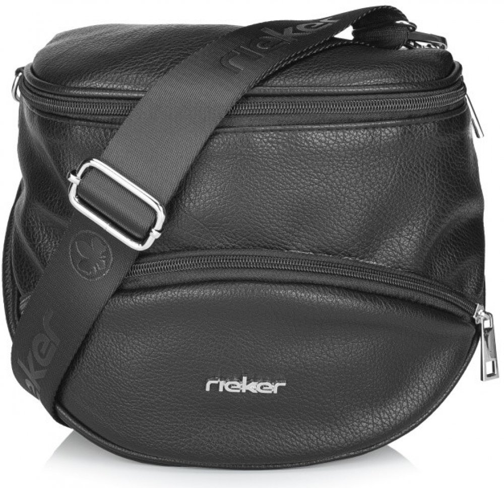 Tato ledvinka od značky RIEKER je stylová volba pro každodenní nošení, její černá barva doplněná logem značky tvoří půvabný celek a bude nadčasovým doplňkem Vašeho vzhledu. Na přední i zadní straně jsou umístěny malé kapsičky, které umožní snadný přístup k drobným věcem, jako jsou klíče nebo mobilní telefon. Hlavní prostor kabelky se uzavírá zipem a naleznete zde menší kapsičku ideální pro uložení drobností. Nastavitelný popruh kabelky je sladěný s barvou svršku a umožní nosit ji tak, jak je pro Vám nejpohodlnější. Tato kabelka je kombinací elegantního designu a funkčnosti a bude skvělým doplňkem pro váš vzhled. Rozměry: cca V 23 cm x Š 26 cm x H 10 cm Vnitřní uspořádání: kabelka není dělená. Kabelka má délkově nastavitelný popruh, který lze odepnout. Maximální délka nastavitelného popruhu je cca 105 cm.