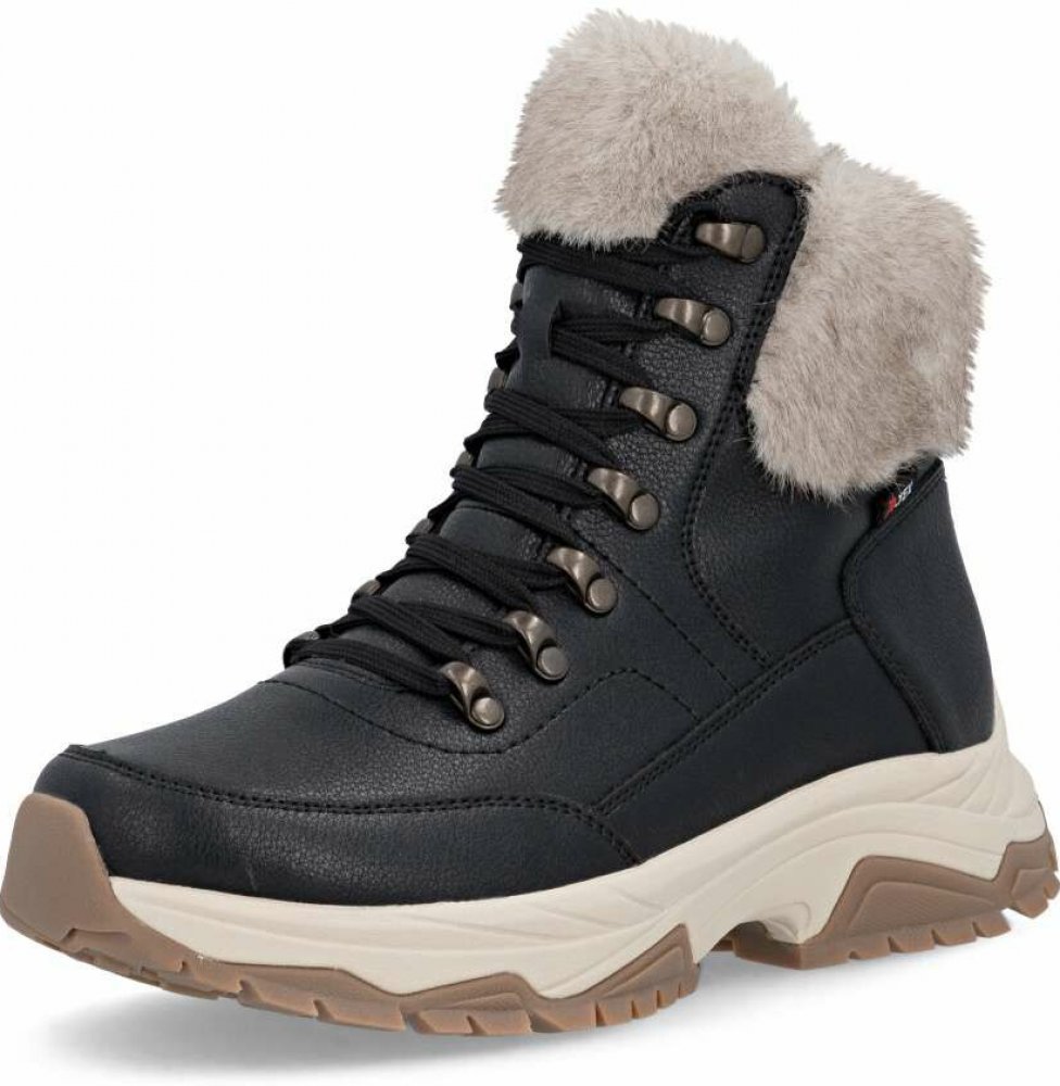 Pokud hledáte zimní obuv, která vás zahřeje, ochrání před nepříznivým počasím a zároveň podtrhne váš styl, tento model je pro vás tou pravou volbou. Černý kožený svršek je nadčasový a snadno kombinovatelný s jakýmkoli outfitem – od džín až po sukně či zimní kabát. Textilní části na svršku jsou nejen vizuálně atraktivní, ale zároveň podtrhují zimní charakter tohoto modelu svým kožešinovým vzhledem. O vaši pohodu se postará TEX membrána materiálu svršku, která spolehlivě ochrání před vlhkostí a sněhem, přičemž zůstává prodyšná. To znamená, že vaše nohy budou stále v suchu a v komfortním klimatu. Uvnitř vás čeká luxusní zateplení z pravé ovčí vlny, která udrží teplo po celý den, a měkká vyjímatelná stélka, kterou si můžete jednoduše vyměnit za ortopedickou nebo ji jen vyčistit. Funkční šněrování vám umožní přizpůsobit si botu přesně podle tvaru nohy, zatímco boční zip zajistí rychlé a pohodlné obouvání bez zbytečné námahy. Nárazy tlumící podešev se postará o stabilitu a jistotu každého kroku a svým precizním provedením dotváří atraktivní vzhled těchto bot. Tyto zimní kotníkové boty budou vaším spolehlivým společníkem na cestu do práce, městské procházky nebo trávení volného častu. Dokonalá souhra moderního vzhledu a maximálního pohodlí díky funkčním technologiím to jsou boty RIEKER Sport.