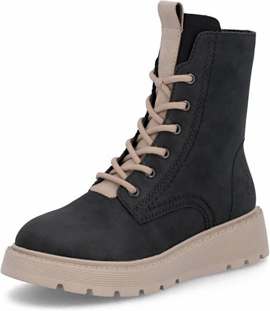 Tyto kotníkové boty Rieker upoutají originální kombinací černého svršku s kontrastním světlým detailem na nártu. Béžové šněrování nejen podtrhuje módní vzhled, ale také umožňuje přesné přizpůsobení noze, zatímco praktický boční zip usnadňuje obouvání. Měkká, vyjímatelná stélka spolu s hřejivou podšívkou zajistí komfort i během chladnějších dnů a Vaše nohy budou jako v bavlnce za každého počasí. Op...