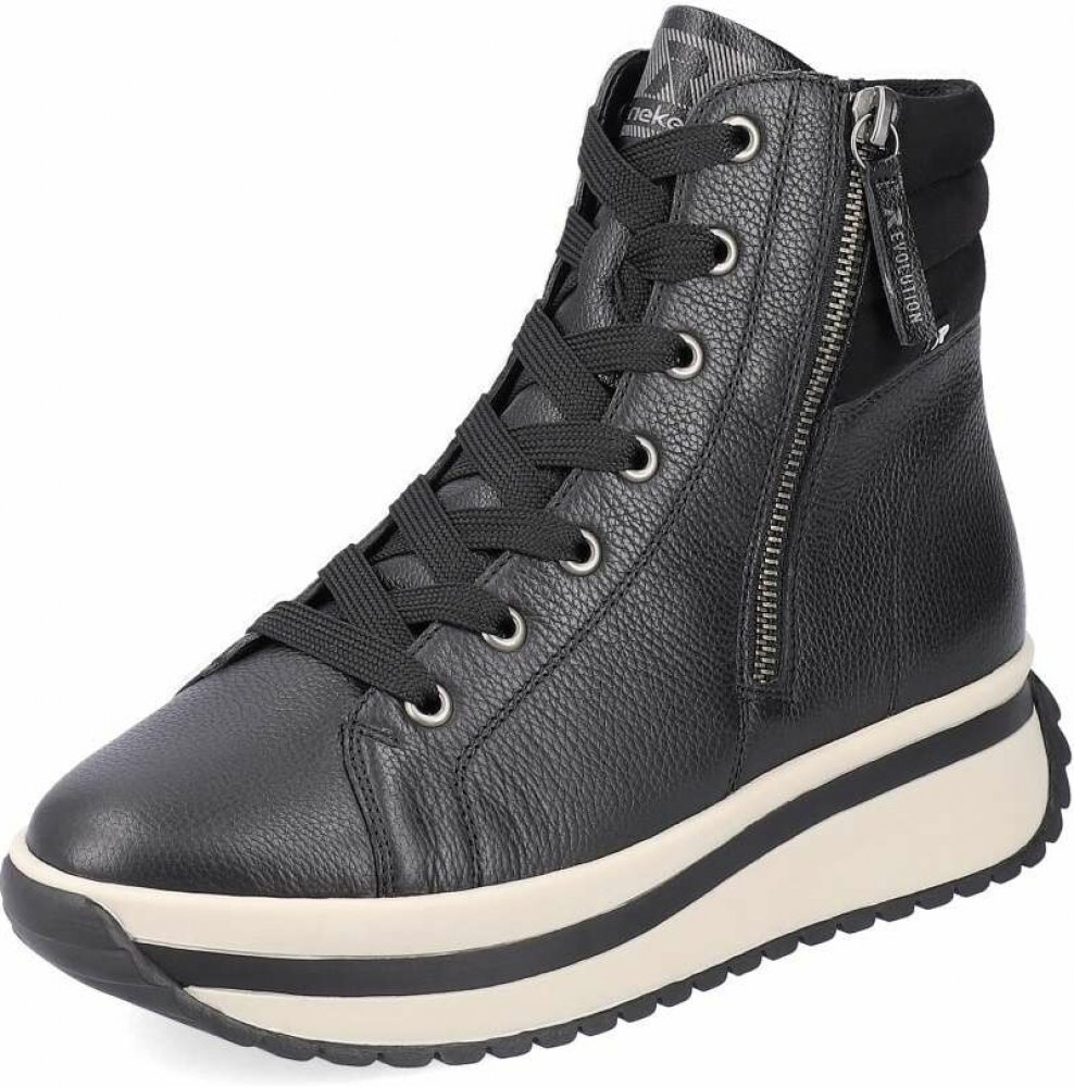 Rieker REVOLUTION je nová řada moderní sportovní obuvi s obrovským důrazem na komfort a pohodlí i při celodenním nošení. Nechte se okouzlit kombinací stylového vzhledu a vynikajícího pohodlí těchto bot. Svršek černé barvy je vyrobený z pravé kůže a je zdobený lehkým prošíváním. Funkční zipy po stranách obuvi Vám ušetří čas při obouvání a šněrováním si je boty upravíte dle svých potřeb. Měkká vyjím...