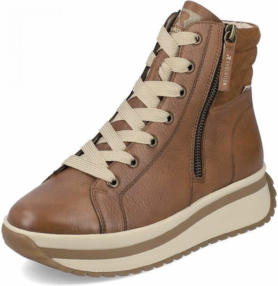Rieker REVOLUTION je nová řada moderní sportovní obuvi s obrovským důrazem na komfort a pohodlí i při celodenním nošení. Nechte se okouzlit kombinací stylového vzhledu a vynikajícího pohodlí těchto bot. Svršek hnědé barvy je vyrobený z pravé kůže a je zdobený lehkým prošíváním. Funkční zipy po stranách obuvi Vám ušetří čas při obouvání a šněrováním si je boty upravíte dle svých potřeb. Měkká vyjím...