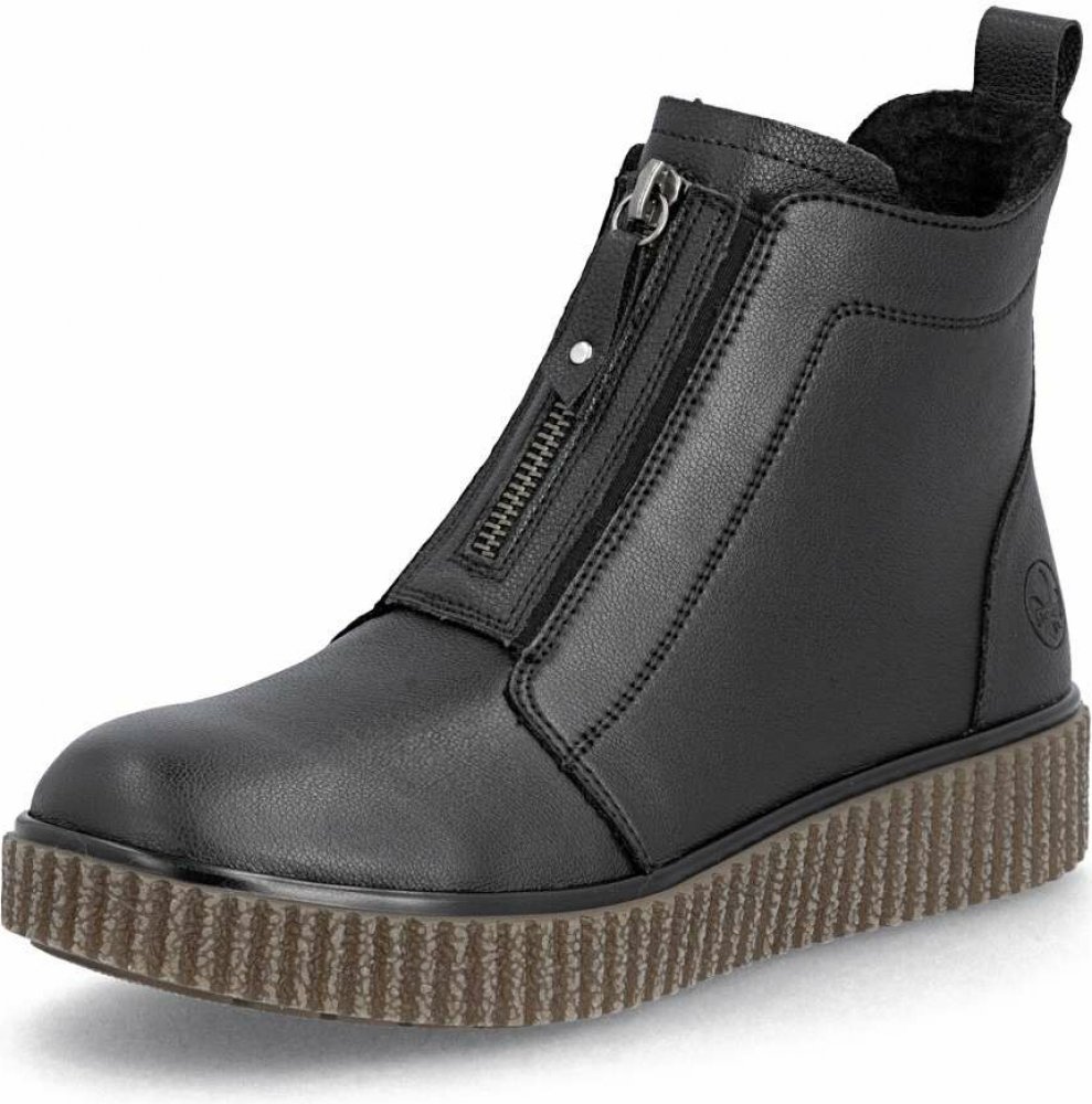 Kotníkové boty značky RIEKER v nadčasovém a zároveň moderním designu představují ideální volbu pro chladnější dny. Kvalitní svršek v černé barvě doplňuje atraktivní aplikace v části nártu, která působí stylově. Praktický boční zip šetří čas při každodenním nošení a díky němu vklouznete do vnitřního hřejivého zateplení, které zajistí teplo během zimních procházek, zatímco vyjímatelná měkká stélka se postará o pohodlí na každém kroku. Komfort každým krokem poskytne vyšší podešev s tlumícím efektem, která zaručuje stabilitu a komfort i při delším nošení. Tyto boty budou ideální volbou pro městská dobrodružství i volnočasové aktivity, spojují moderní vzhled s praktickými detaily a díky kombinaci kvalitních materiálů a praktických doplňků nabízejí pohodlí i při celodenním nošení.