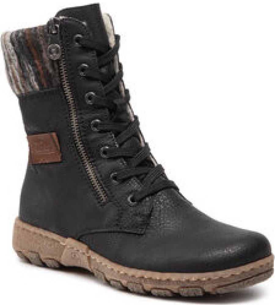 Dámské zateplené kotníkové boty značky Rieker se šněrováním a ozdobným nápletem v horní části. Díky pohodlné platformě jsou ideální ke každodennímu nošení. Teplá podšívka udrží vaše nohy v teple. Zip po straně slouží ke snadnému prozutí. Podešev:Podešev obuvi je s protiskluzovým vzorkem vyrobená ze syntetického materiálu. Je flexibilní díky ručnímu prošívání. (nutné impregnovat může propustit vodu...