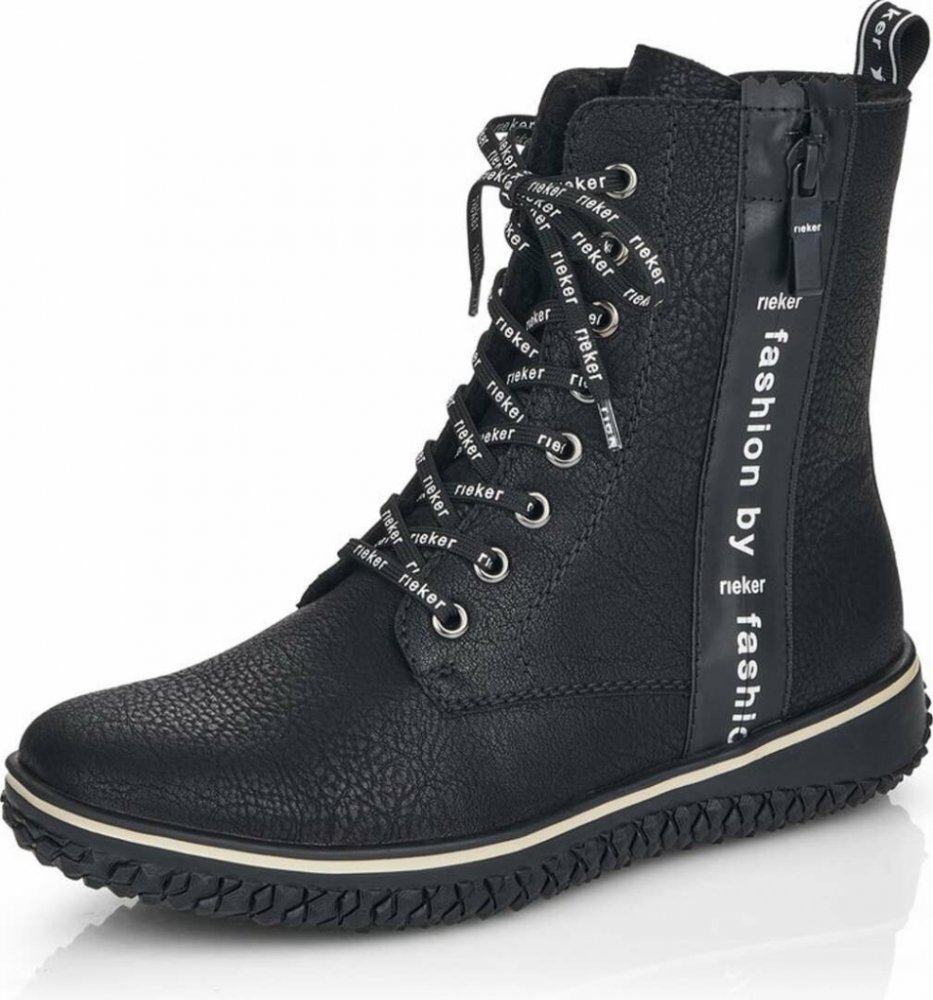 Komfort a styl, přesně tato dvě slova vystihují jedinečné šněrovací boty značky RIEKER. K snadnému obutí Vám napomůže funkční zip na vnitřní straně, šněrování a pomocné poutko u horního okraje za patou. Teplá podšívka krásně zahřeje a hrubá podešev Vám zajistí bezpečnou chůzi. Můžete si je obout k černým džínům, stylovému svetru nebo ke kalhotám moderního střihu a vždy se budete cítit skvěle.