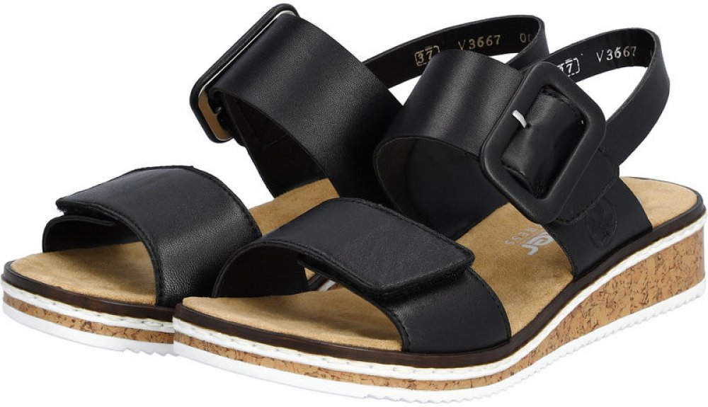 Rieker dámské kožené sandály V3667-00 černé schwarz