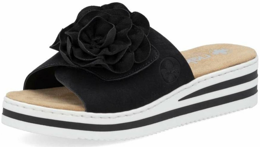 Černé pantofle RIEKER přinášejí do vaší obuvi nádech stylu, mají nápadité zdobení ve formě květu na nártovém pásku, opatřeném suchým zipem, kterým si nastavíte obvod pro komfortní pocit. Černá barva je nadčasová a oceníte ji jejím lehkým kombinováním s oblečením. Příjemná textilní stélka poskytuje komfort a měkký dotek na každém kroku. Flexibilní podešev v bílé barvě s černým lemem nejen zdůrazňuj...