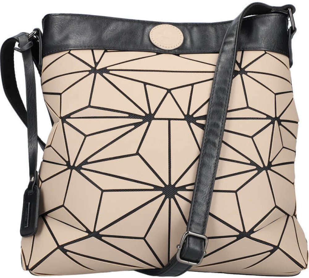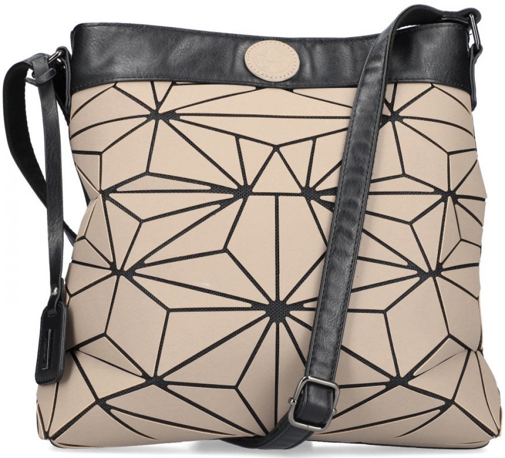 Tato crossbody dámská kabelka značky Rieker Vás zaujme na první pohled svým osobitým vzhledem. Klasický střih je originálně kombinován s neotřelým designem svršku, který se skládá z geometrických tvarů v kombinaci béžové a černé barvy. Horní lem je ozdoben kulatým logem této značky a na hladkém zadním díle se nachází malá kapsička na drobnosti, které potřebujete mít po ruce. Kabelka je dělená na d...