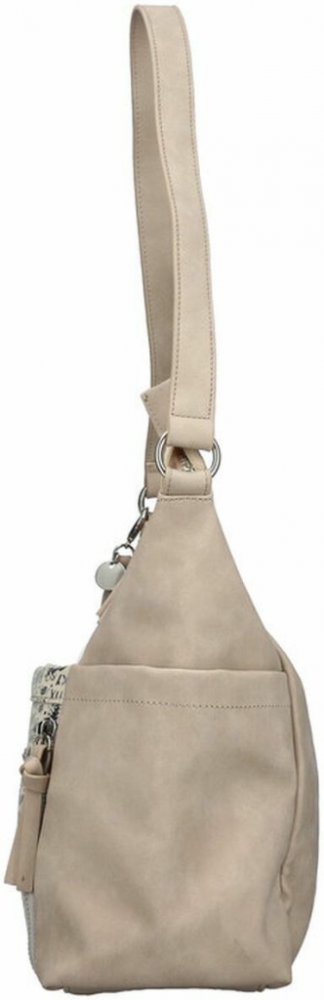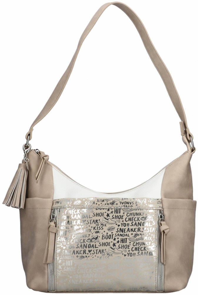 Tato RIEKER kabelka se vyznačuje poutavou kombinací barev a materiálů, které dohromady vytvářejí zajímavý vzhled. Na přední části jsou umístěny nápisy s odlesky, které přidávají kabelce výrazný prvek a odepínatelná aplikace dodá punc originality. Kabelka disponuje mnoha kapsičkami jak na přední, tak na boční části pro usnadnění organizace různých věcí. Vnitřní prostor je uzavřen zipem a obsahuje menší kapsy, které poskytují další možnosti uspořádání. Pro pohodlné nošení je kabelka vybavena popruhem, který umožňuje nošení přes rameno. Tato kabelka je ideální volbou jako stylový doplněk každodenního outfitu. Rozměry: cca V 19,5 cm x Š 32 cm x H 10 cm Vnitřní uspořádání: kabelka není dělená