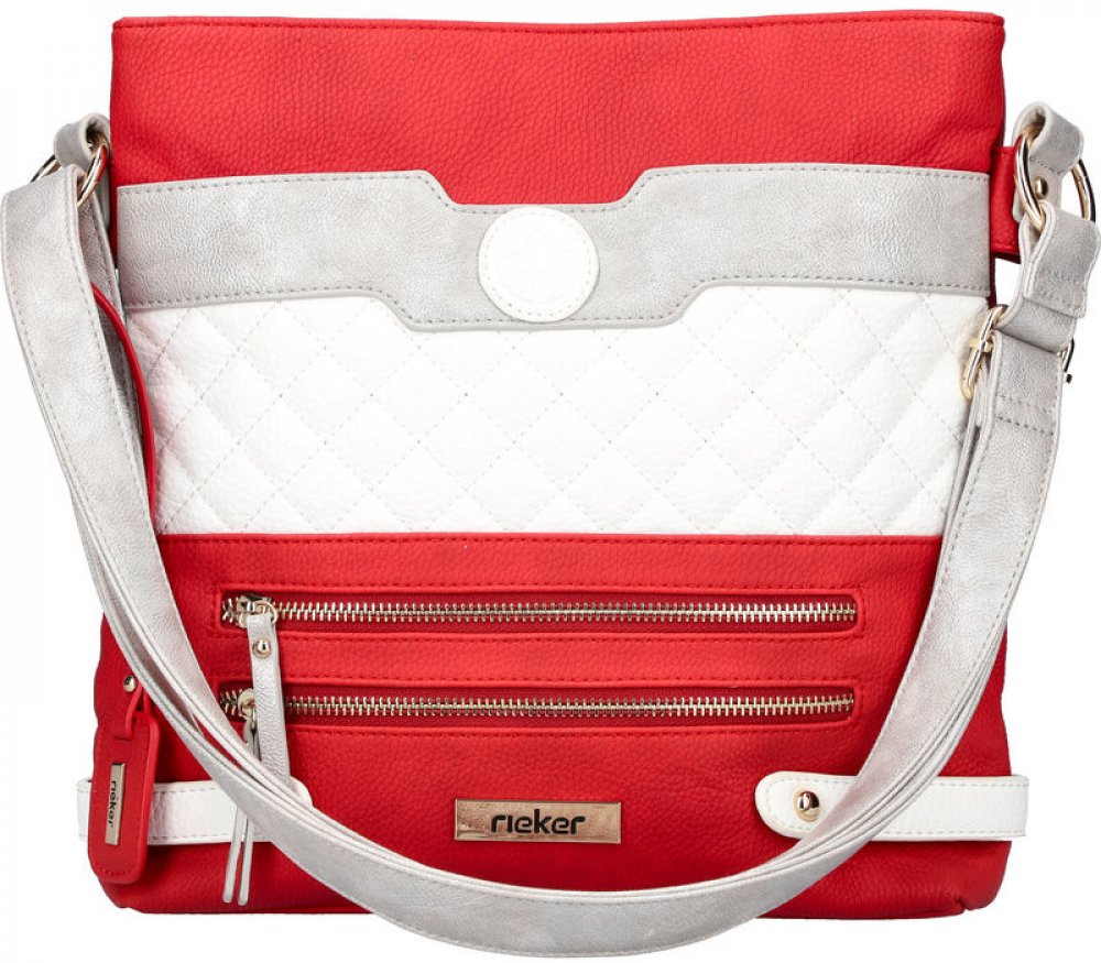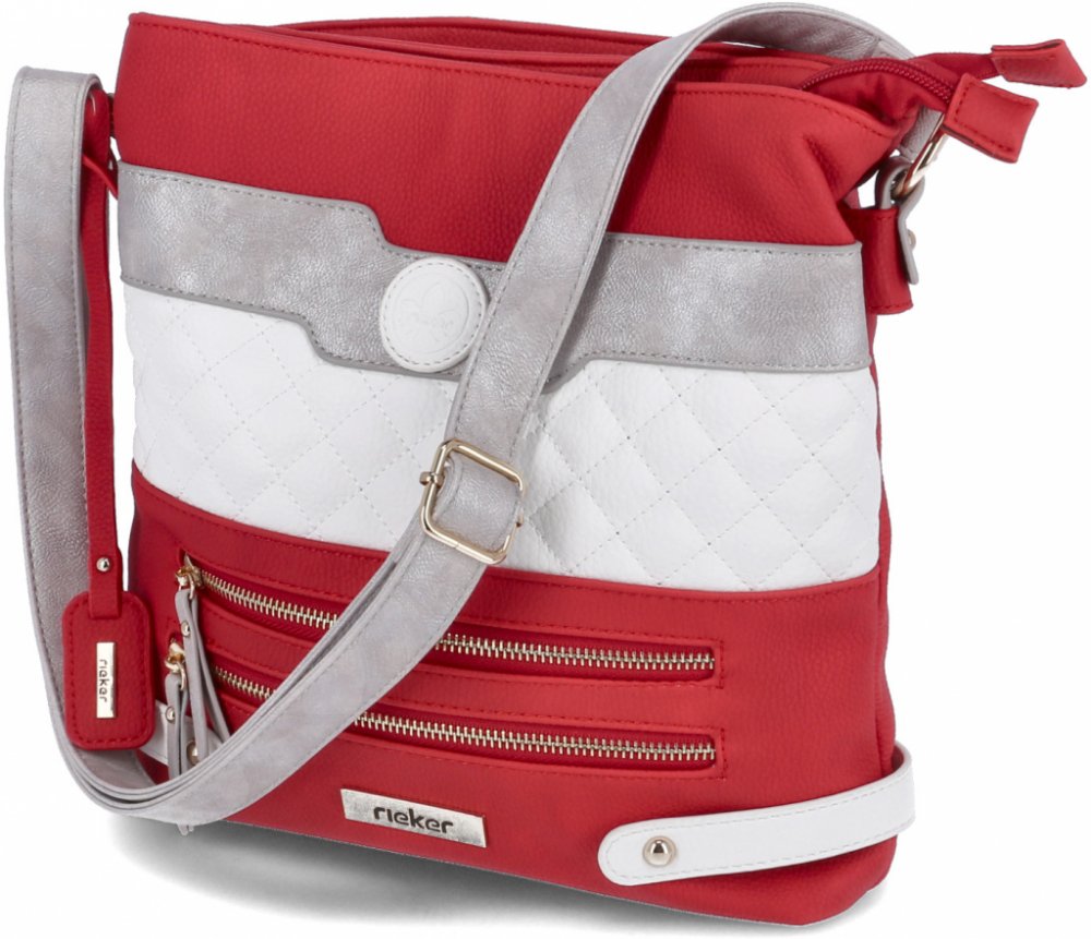 Dámská crossbody kabelka/taška přes rameno/taška přes rameno Rieker červená Imitace kůže - přívěsek s logem - nastavitelný ramenní popruh - přední strana s ozdobnými pruhy - vyztužené dno - dvě přihrádky na zip vpředu a jedna vzadu - dvě hlavní přihrádky na zip - dvě kapsy na drobnosti a jedna přihrádka na zip uvnitř - rozměry: cca 27 x 26 x 9 cm (VxŠxH)
