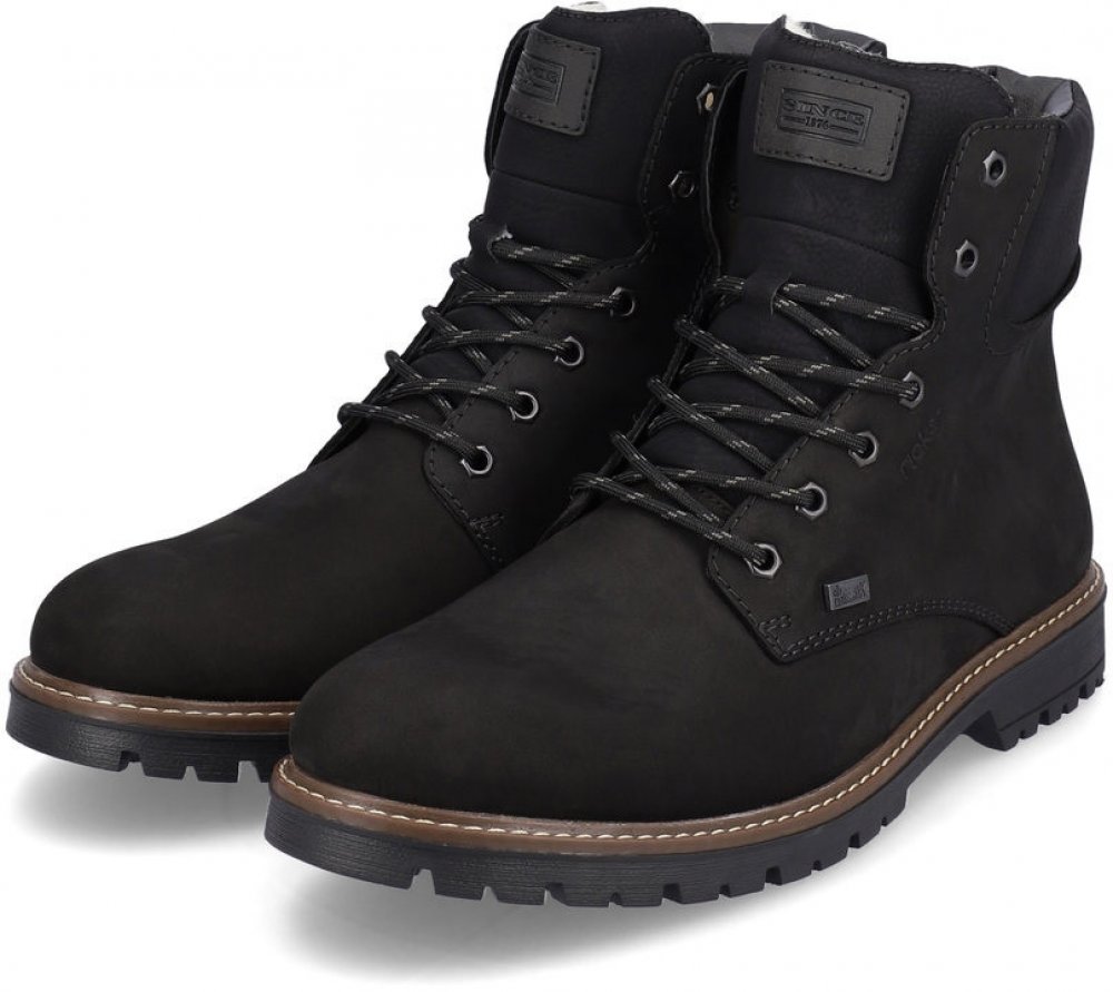 Boty Rieker - lepená pánská kotníková obuv se svrškem z usně a s lemem okolo kotníku, který je ze syntetiky, je vyteplená podšívkou ze střižní ovčí vlny a je vybavená vodoodpudivou membránou RiekerTex. Pohodlné nazouvání zajišťuje šněrování a zip na vnitřní straně. Podpatek je vysoký 3,- cm. Podešev je flexibilní a díky systému Antistress skvěle tlumí nárazy a otřesy. Lepená obuv - pevnost lepeného spoje může být negativně ovlivněna promáčením nebo propocením, event. opakovaným používáním nedostatečně vysušené obuvi. Při neopatrné chůzi může dojít k mechanickému uvolnění lepeného spoje - ukopnutí. Materiál svršku: Useň. Materiál podšívky: Textil. Materiál podešve: Syntetika.
