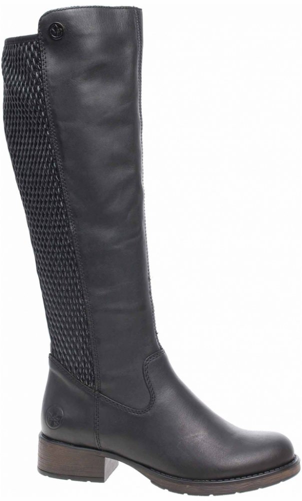 Rieker černá bez podpatku vysoké kůže kulatá špička zimní střední