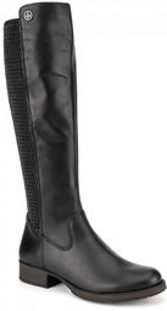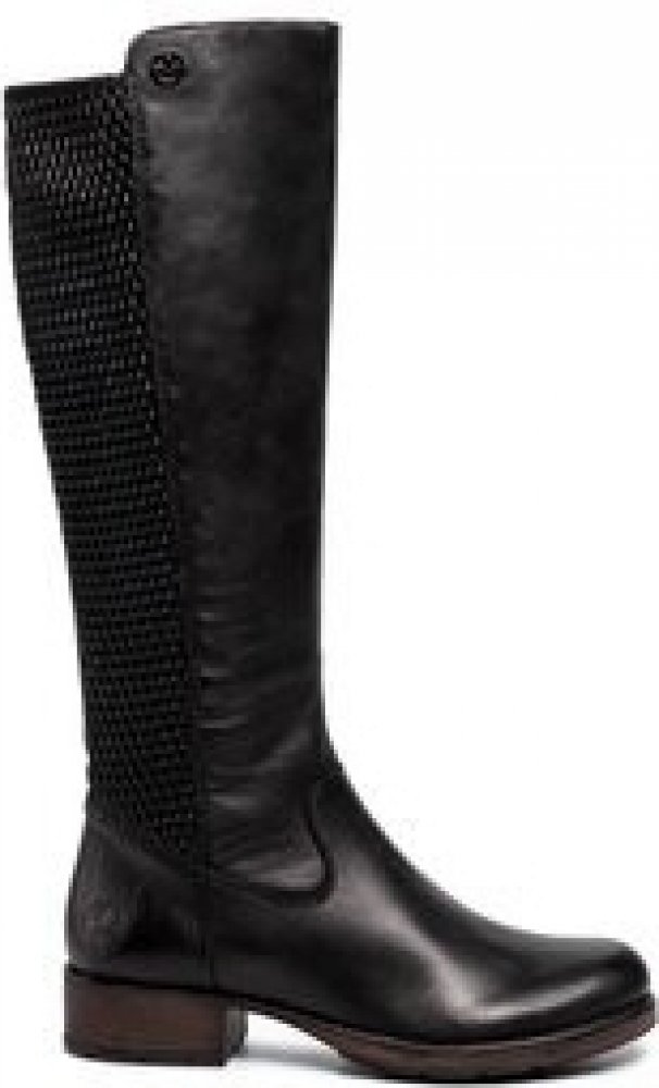 Dámské vysoké kozačky, vyrobené v kombinaci hladké kůže a pružné syntetiky v lýtkové části. Vnitřek obuvi tvoří podšívka z microfleecu a komfortní stélka. Obuv je vhodná pro mírně užší až střední velikost lýtka. Snadné nazouvání zajišťuje zip na vnitřní straně obuvi.