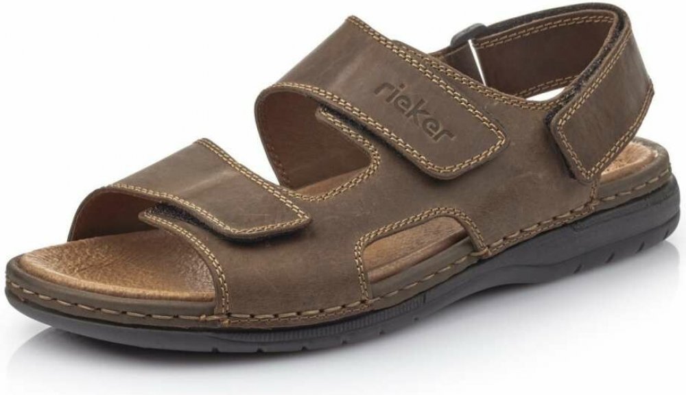 Pánské kožené sandály RIEKER v nadčasové hnědé barvě jsou dokonalou kombinací komfortu a univerzálního vzhledu. Precizně zpracované pásky jsou opatřeny suchými zipy pro snadnou úpravu a přizpůsobení chodidlu. Příjemná kožená stélka a podešev tlumící nárazy při chůzi zajistí komfort, díky kterému si užijete celodenní nošení bez omezení.