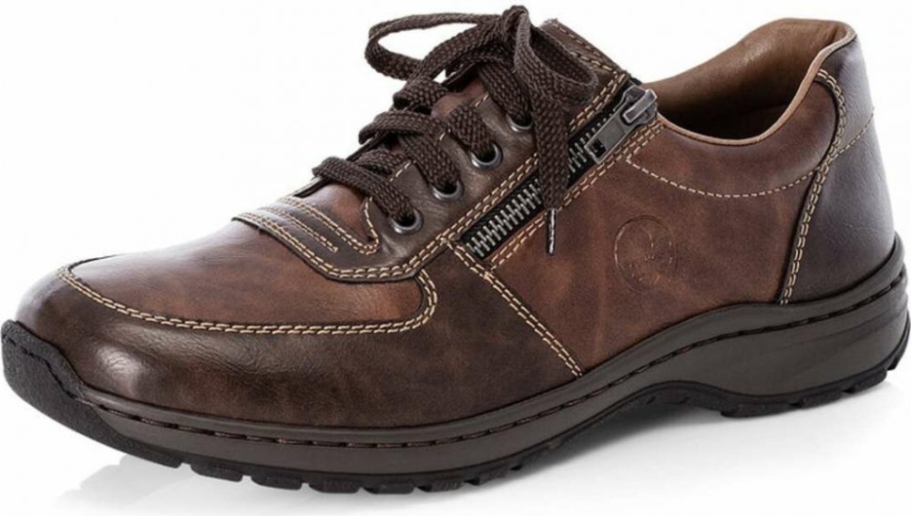 Pánské boty RIEKER v univerzální hnědé barvě jsou ideální kombinací nápaditého stylu a funkčnosti. Svršek je kombinací hnědých odstínů, kterou doplňuje vytištěné logo značky dodávající obuvi punc originality. Praktické šněrování spolu se zipem v oblasti nártu umožňují snadné obutí a skvělé přizpůsobení. Celodenní komfort Vám zajistí vyjímatelná stélka širšího střihu a podešev s technologií tlumící...