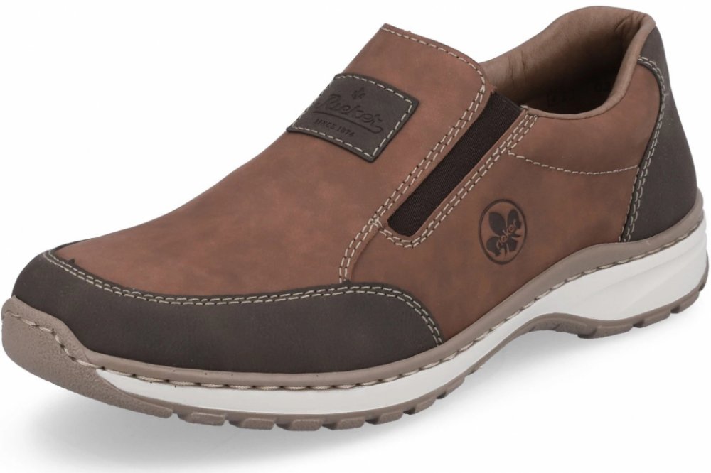 Pánské polobotky značky Rieker na pohodlné platformě s gumou po straně pro snadné obutí. Boty jsou vodné i na širší nohu.