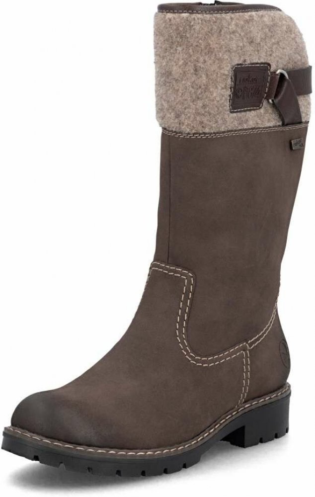 Tyto zimní kozačky RIEKER ocení ženy, které hledají praktickou a hlavně pohodlnou obuv. Hnědý svršek je jemně prošívaný světlou nití a opatřen speciální texovou membránou, která činí svršek obuvi nepromokavým. Zip z vnitřní strany poslouží k obouvání a nazutím vstoupíte do pohodlí měkké a hřejivé podšívky, kterou oceníte v chladných zimních dnech. Jemná elegance ozdobných prvků v horní části tohot...