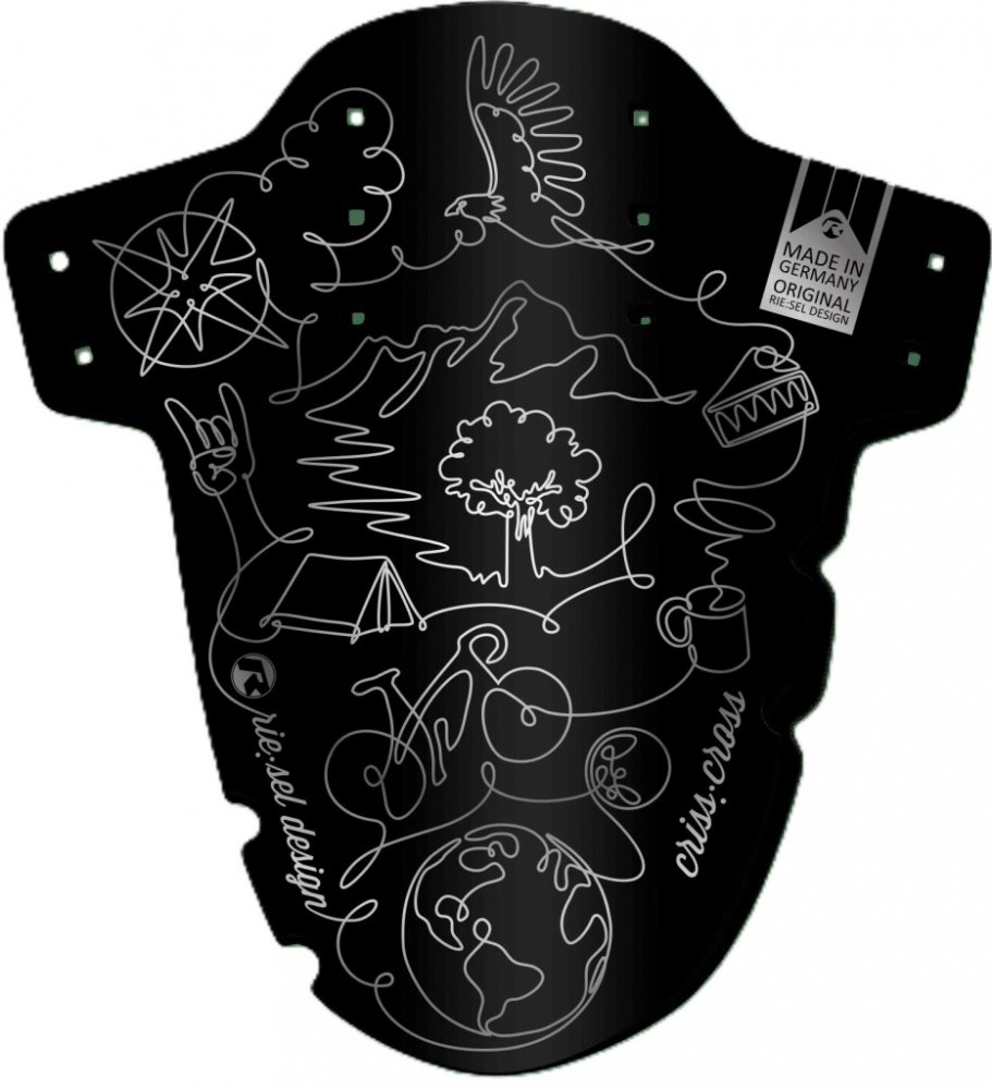 Blatník „crisscross“ od Riesel design je blatník vyrobený z vysoce kvalitního plastu pro cyklokros a gravelová kola. Blatník se upevňuje kabelovými sponami na vidlici. Byl navržen jako ochrana proti stříkající vodě, aby za nepříznivých podmínek udržel váš obličej bez nečistot, bláta a vody. Blatník funguje s vidlemi pro kotoučové brzdy a na většině vidlic vyrobených pro ráfkové brzdy. Dodávka obsahuje 4 černé stahovací pásky.