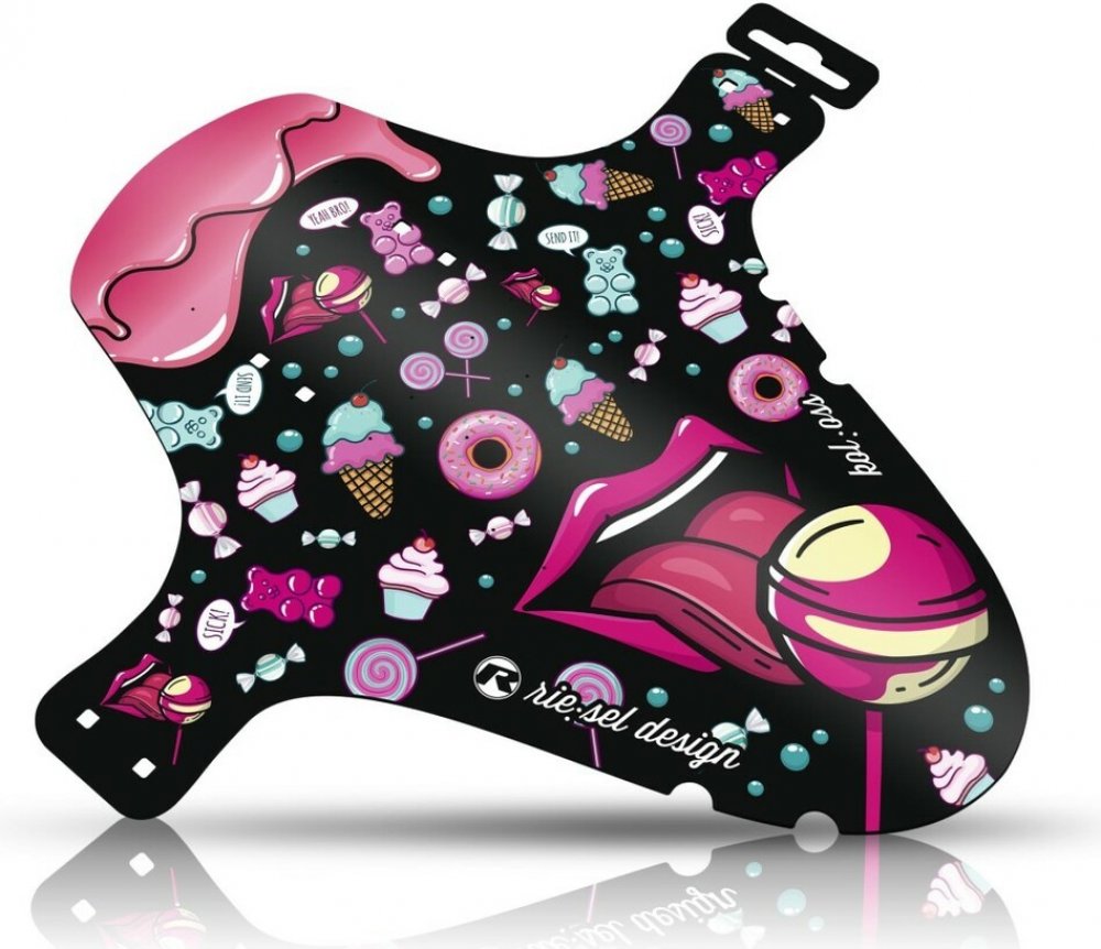 Jednoduchý a funkční blatníček na vidlici a zadní stavbu v cool designu Rie:sel. Větší bráška od Schlam:PE - delší o "nos" a širší. Upevnění pomocí stahovacích pásek, které jsou součástí balení. Odolný proti poškrábání.