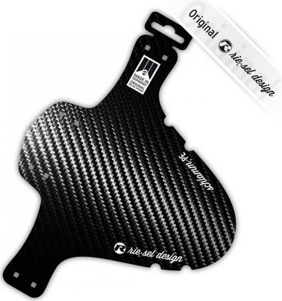 Přední blatník „SchlammPE“ od německé firmy Riesel Design je vyroben z vysoce kvalitního plastu a je navržen pro široké použití na horských kolech s 26" až 29" koly. Blatník se připevňuje připevněný pomocí stahovacích pásků mezi nohama a můstkem vidlice. "SchlammPE" byl navržen jako ochrana proti stříkající vodě, která chrání váš obličej před nečistotami, blátem a vodou za nepříznivých podmínek. Černé stahovací pásky jsou součástí dodávky.