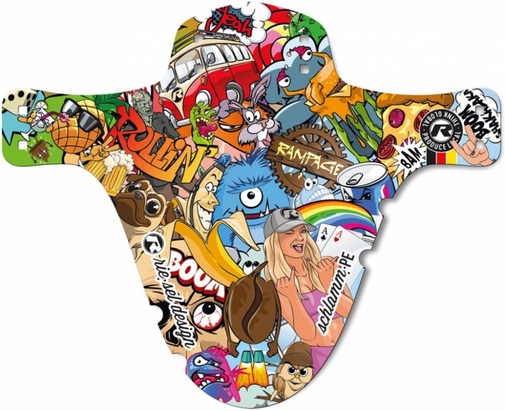Riesel Design „SchlammPE“ je blatník na kolo vyrobený z vysoce kvalitního plastu. Blatník je na kolo upevněn kabelovými sponami mezi dolními nohami a vidlicovým můstkem odpružené vidlice. Byl navržen jako ochrana proti stříkající vodě, aby za nepříznivých podmínek udržel váš obličej bez nečistot, bláta a vody. Sada obsahuje stahovací pásky. Blatník Schlamm:PE se hodí pro Enduro a MTB kola.