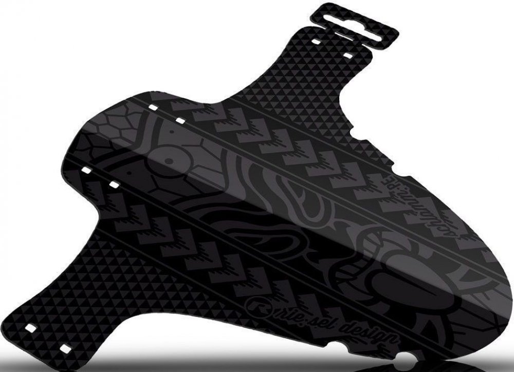 Přední blatník „SchlammPE“ od německé firmy Riesel Design je vyroben z vysoce kvalitního plastu a je navržen pro široké použití na horských kolech s 26" až 29" koly. Blatník se připevňuje připevněný pomocí stahovacích pásků mezi nohama a můstkem vidlice. "SchlammPE" byl navržen jako ochrana proti stříkající vodě, která chrání váš obličej před nečistotami, blátem a vodou za nepříznivých podmínek. Černé stahovací pásky jsou součástí dodávky.