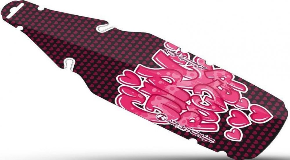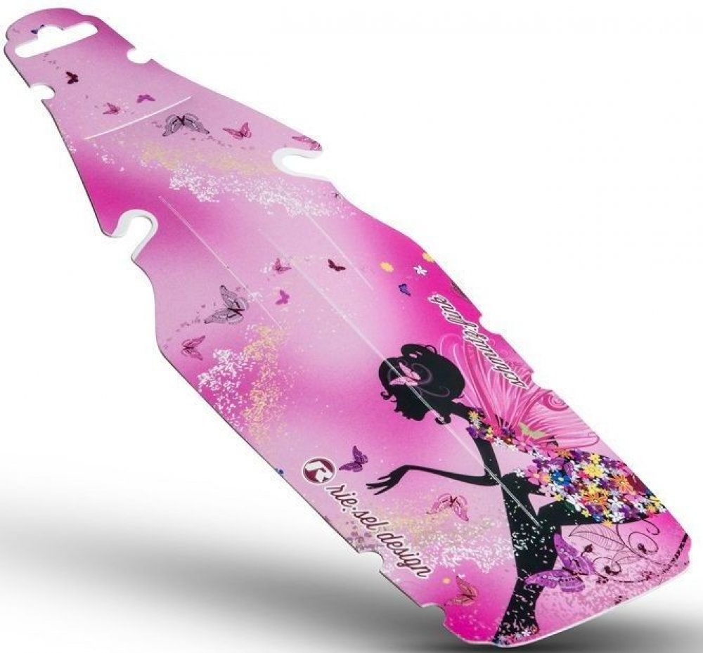 Jednoduchý a funkční dětský blatník pod sedlo v cool designu Rie:sel.Upevnění na ližiny sedla bez pomocí stahovacích pásek.