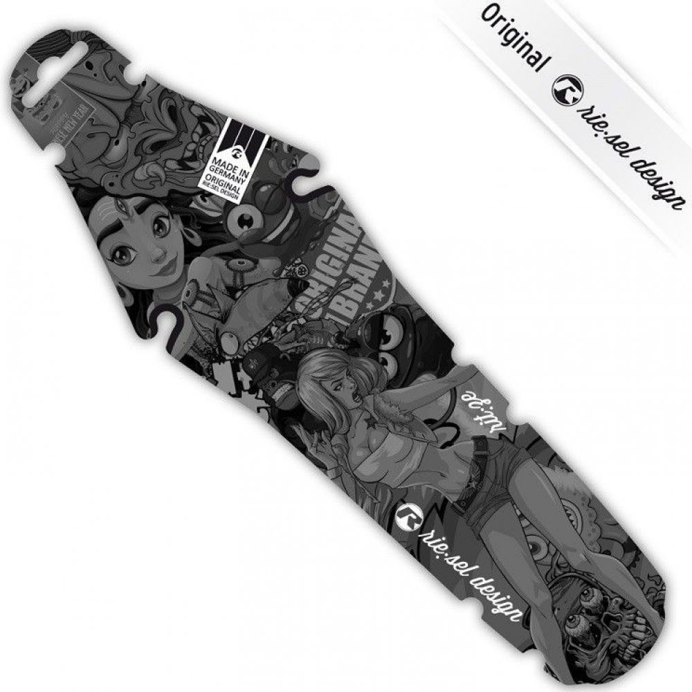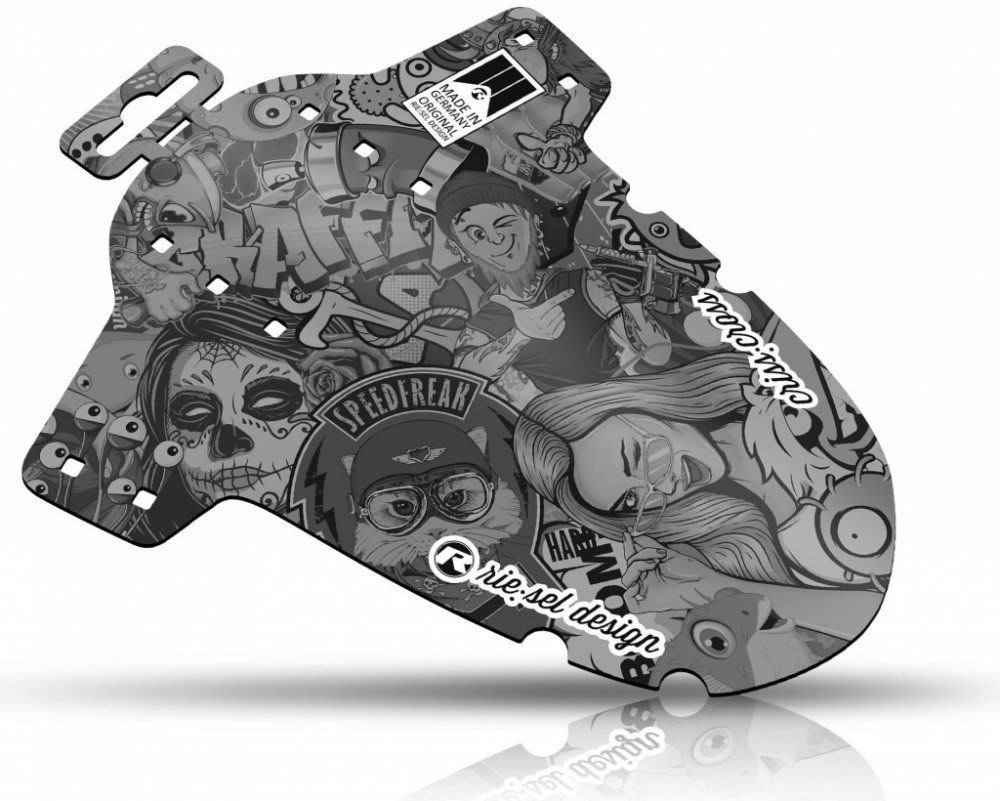 Mokro, zima, bahno - podmínky, které si většina z nás moc neužívá. Letíte po oblíbené stezce, ale co vteřinu vás sprcha bláta a vody odletující od kol oslepuje. Otíráte brýle, rukavicí dostáváte špínu z očí, nakonec zastavujete. Přesně z těchto zkušeností vyšel Rie:sel, když navrhoval svoje blatníčky. Blatníky jsou vyrobené z vysoce kvalitního polyethylenu (PE), ideálního materiálu pro tyto účely. Rie:sel je velmi progresivní mladá firma z Německa. Mezi hlavní produkty Rie:sel design patří blatníčky, které jsou určené pro všechny druhy kol. Hitem jsou blatníčky na přední a zadní kolo i blatníček pod sedlo. Vše ve velmi originálních designech a v německé kvalitě.