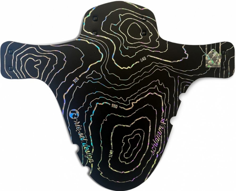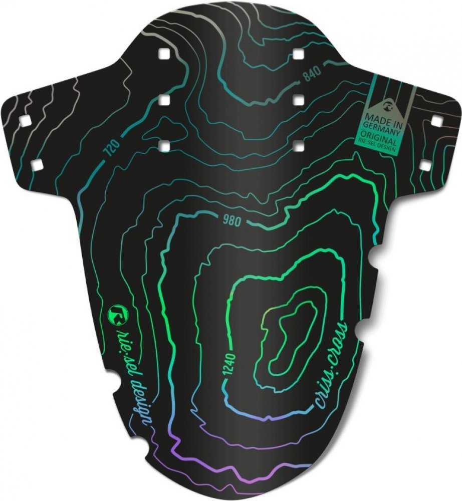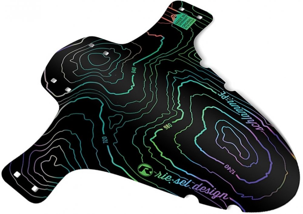 Přední blatník „SchlammPE“ od německé firmy Riesel Design je vyroben z vysoce kvalitního plastu a je navržen pro široké použití na horských kolech s 26" až 29" koly. Blatník se připevňuje připevněný pomocí stahovacích pásků mezi nohama a můstkem vidlice. "SchlammPE" byl navržen jako ochrana proti stříkající vodě, která chrání váš obličej před nečistotami, blátem a vodou za nepříznivých podmínek. Černé stahovací pásky jsou součástí dodávky.