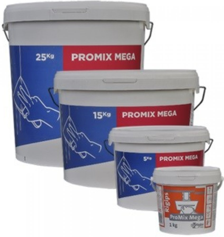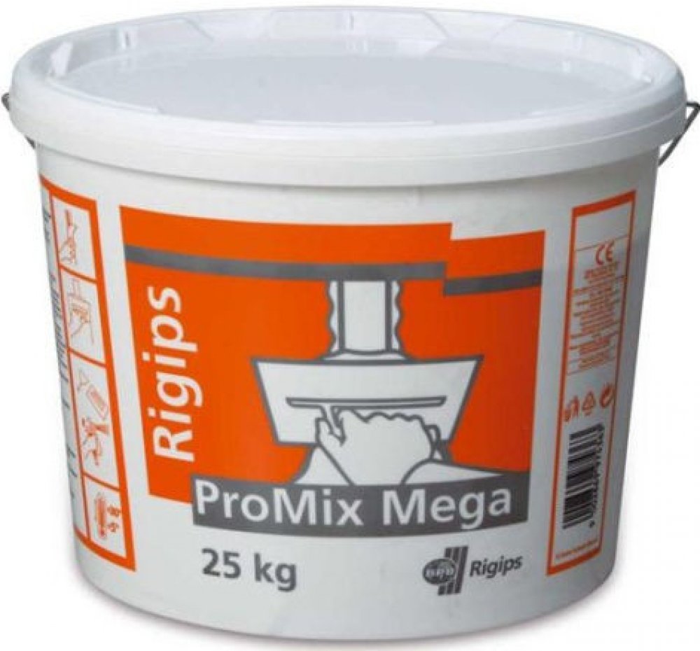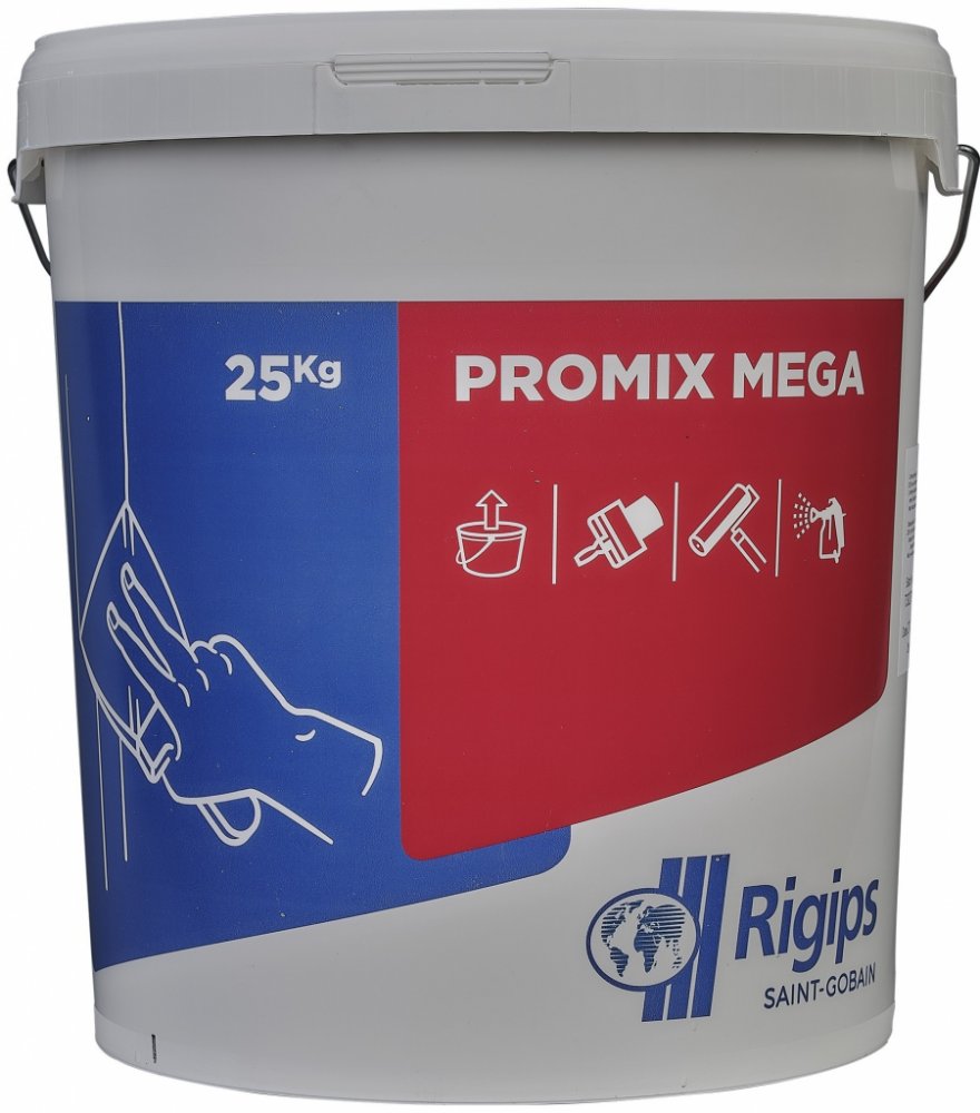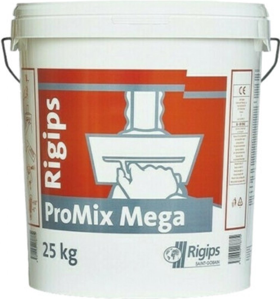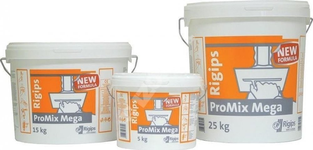 Tmel ProMix Mega je univerzální pastový tmel určený k základnímu tmelení i pro finální tmelení spár sádrokartonových desek a jiných povrchů např. omítek, betonu apod. Jeho předností je výborný finální povrch, snadné nanášení a broušení. Tmel je připraven v konzistenci k přímé spotřebě a je možné ho nanášet ručně i strojně (“Airless“- bez vzduchu).