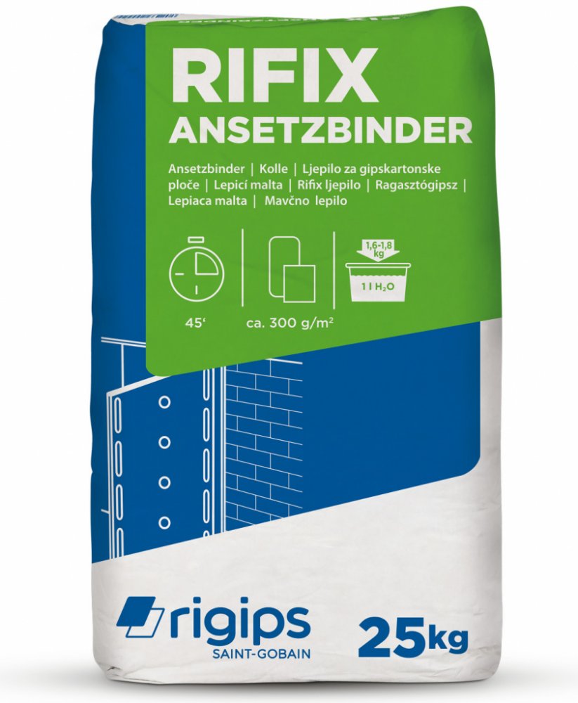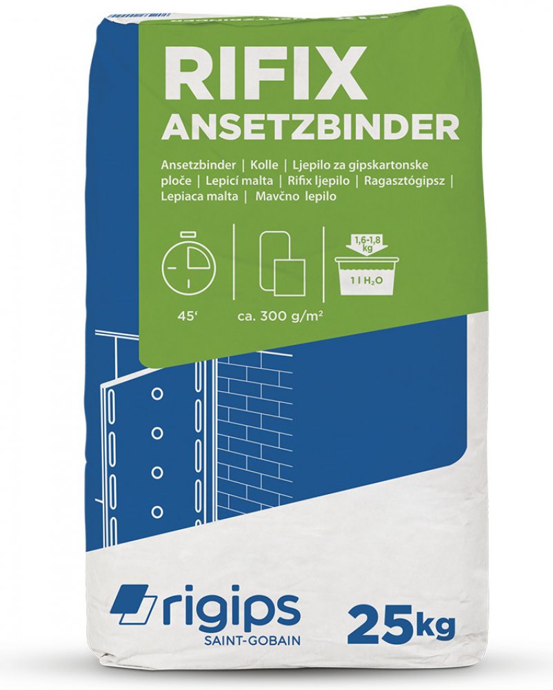 K lepení SDK desek a tepelně-izolačních desek Rigitherm na podkladní konstrukci. Malta Rifix je určena pro lepení sádrokartonových desek a sádrovláknitých desek Rigidur přímo na stabilní svislé stavební konstrukce v interiéru. Lepení na stropní konstrukce je zakázáno.