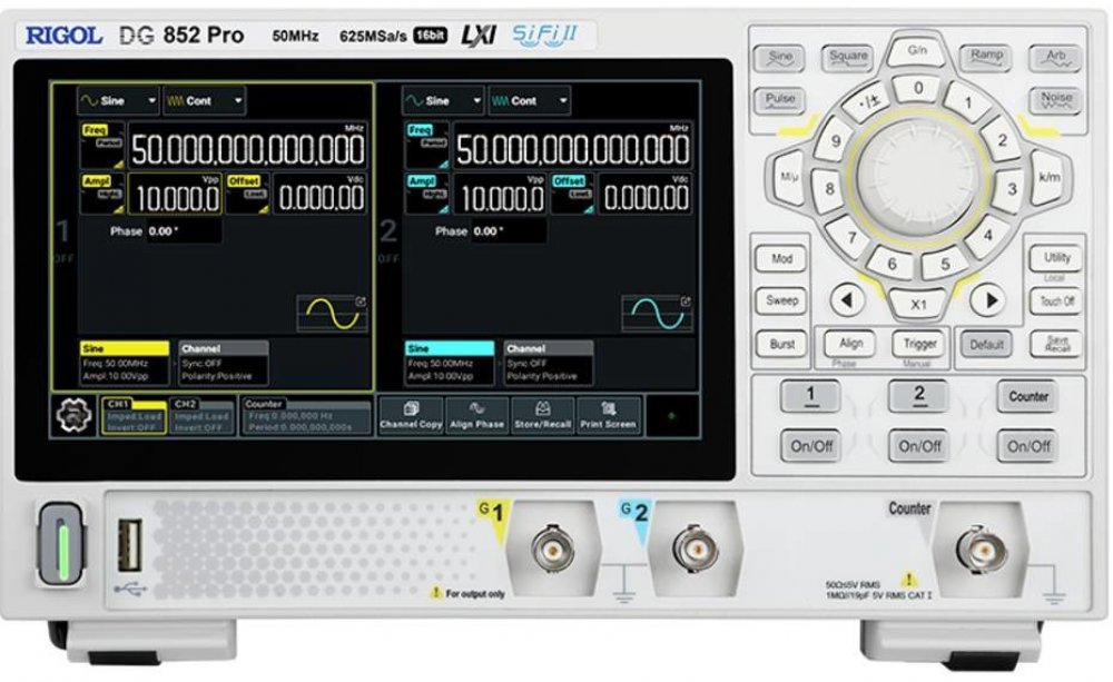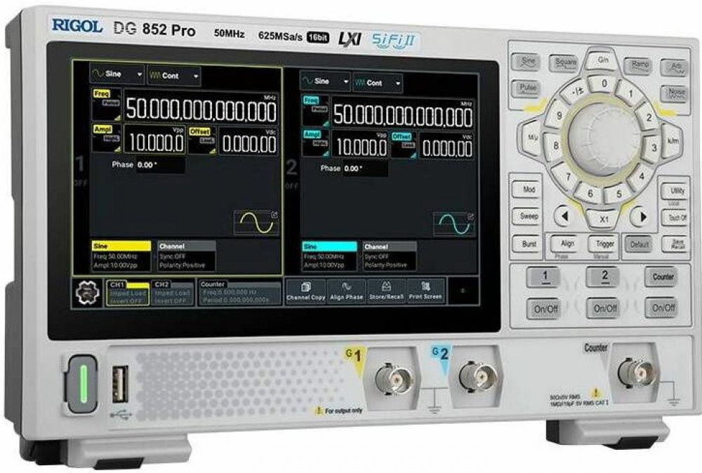 Rigol DG852 Pro je moderní dvoukanálový generátor libovolných funkcí a průběhů s šířkou pásma až 50 MHz . Nabízí vzorkovací frekvenci 625 MSa/s , 16bitové vertikální rozlišení a standardně 2 Mpts paměti na kanál , rozšiřitelnou až na 8 Mpts na kanál. Zařízení kombinuje funkce generátoru libovolných funkcí, generátoru impulsů, generátoru šumu, generátoru harmonických, modulátoru a čítače kmitočtu, což poskytuje širokou škálu aplikací v laboratoři, vzdělávání a terénním testování.