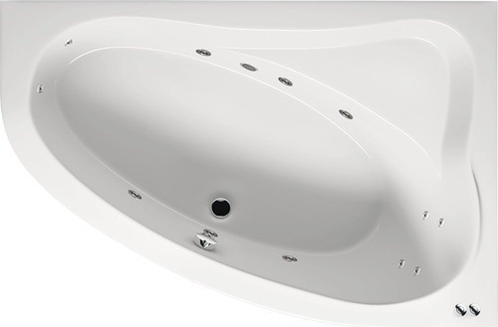 Rohová asymetrická akrylátová vana Lyra, levá, s bílou povrchovou úpravou, o rozměrech 153,5x100 cm. Sada noh a odpadová souprava nejsou standardní součástí dodávky a je nutno je dokoupit zvlášť. Kompatibilní modely naleznete v PŘÍSLUŠENSTVÍ. BA6800500000000, BA6800500000000_RIH