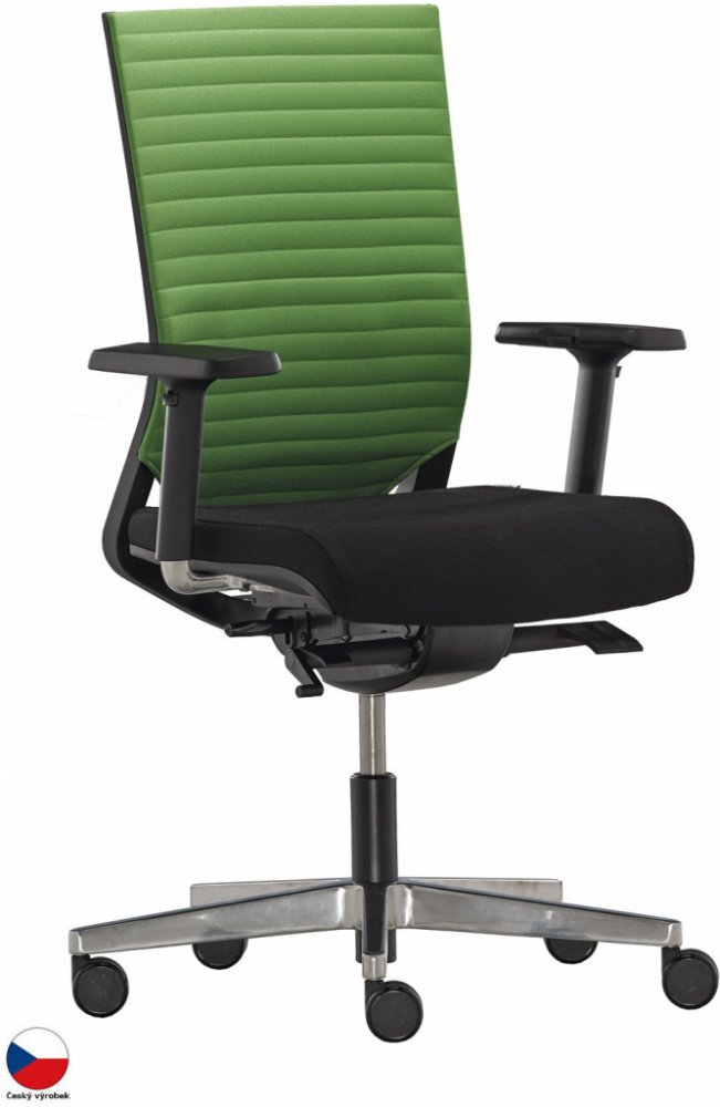 Otočná kancelářská židle s vysokou zádovou opěrou s nataženým čalouněním (potahem) LINE a se synchronní mechanikou SELF se samonstavitelným přítlakem