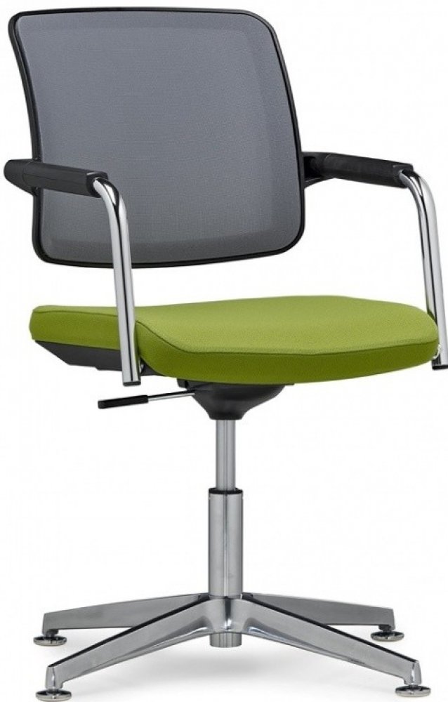 Otočná konferenční židle na čtyřramenném kříži. Vhodná pro domácí pracovny,nebo jako přísedová židle k výškově stavitelným stolům.