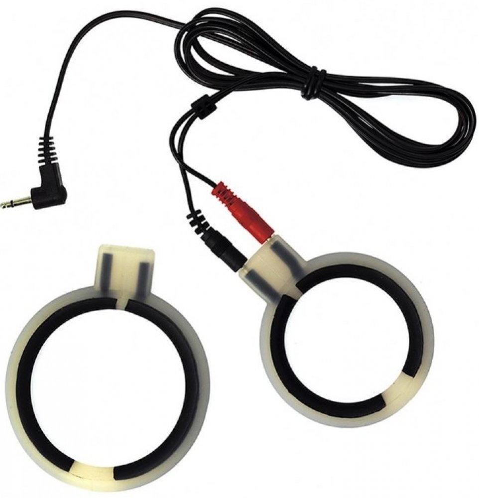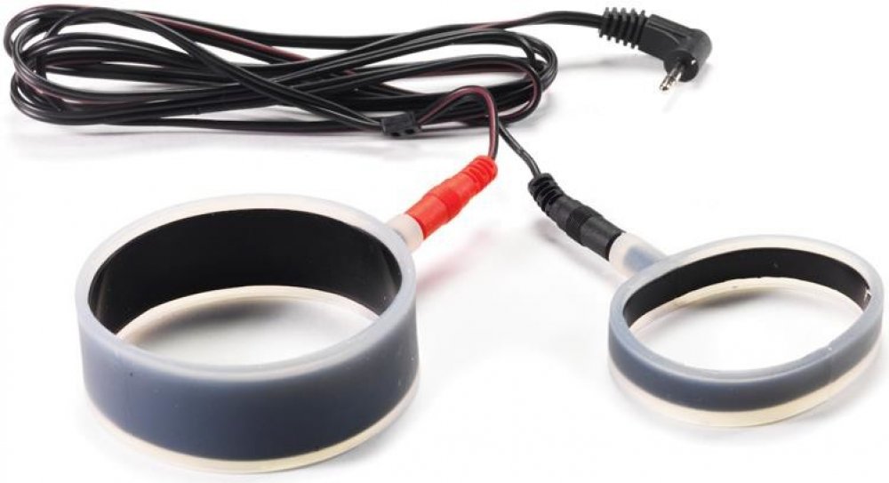 Tyto kulaté kroužky jsou oba bipolární. a mohou být použity samostatně nebo společně. Černé části jsou vodivé. Vodič má 2,5 mm jack konektor, který se hodí pro naše 3 různé jednotky napájecího zdroje ref. # 7850, # 7880 a # 7890