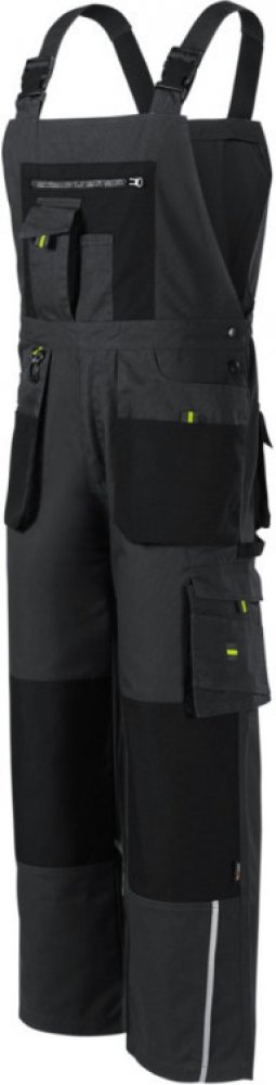Pruženka v zadní části pasového límce, zapínání na knoflíky v boční části, šle s elastickým dílem nastavitelné přezkou, 14 multifunkčních kapes, zdvojený materiál v oblasti kolen, plastové "D" poutko a karabina na klíče a ID karty, poutko na kladivo, dvojité prošití pro vyšší odolnost, vysoce odolný ...