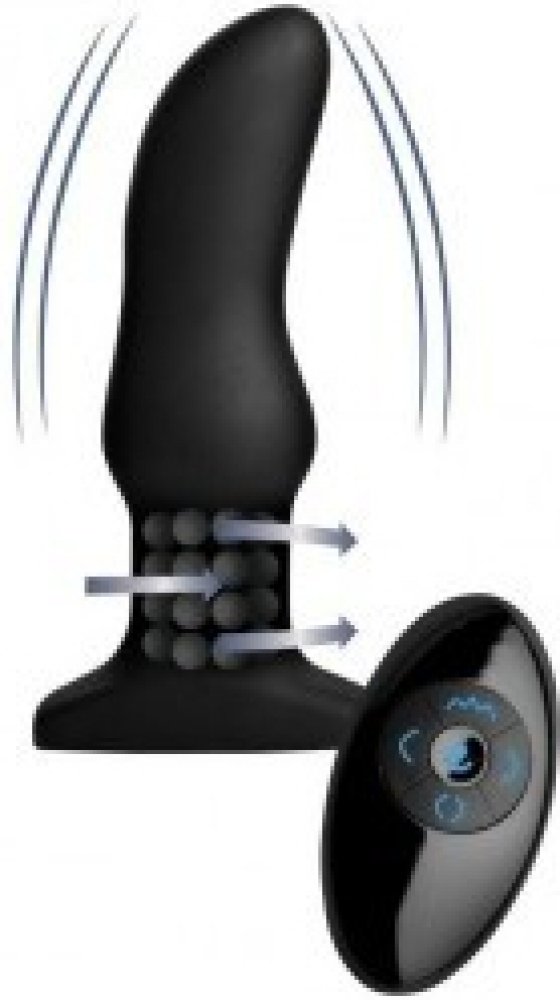 Rimmers Model M Curved Rimming Plug with Remote je luxusní a unikátní zakřivený rotační a vibrační anální kolík na dálkové ovládání od společnosti XR Brands.