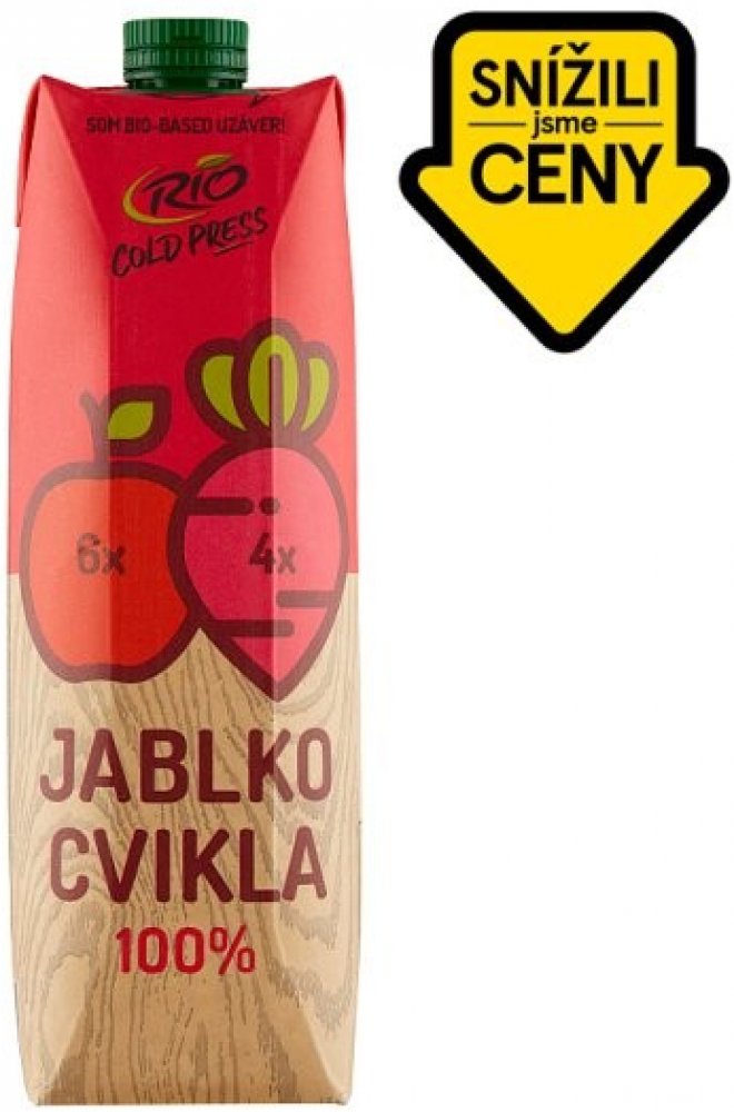 Cena se může v jednotlivých regionech lišit. -- 100% šťáva z jablek a červené řepy lisovaná za studena. Obsahuje 60 % jablečné šťávy, 40 % šťávy z červené řepy. Ošetřeno šetrnou pasterizací.