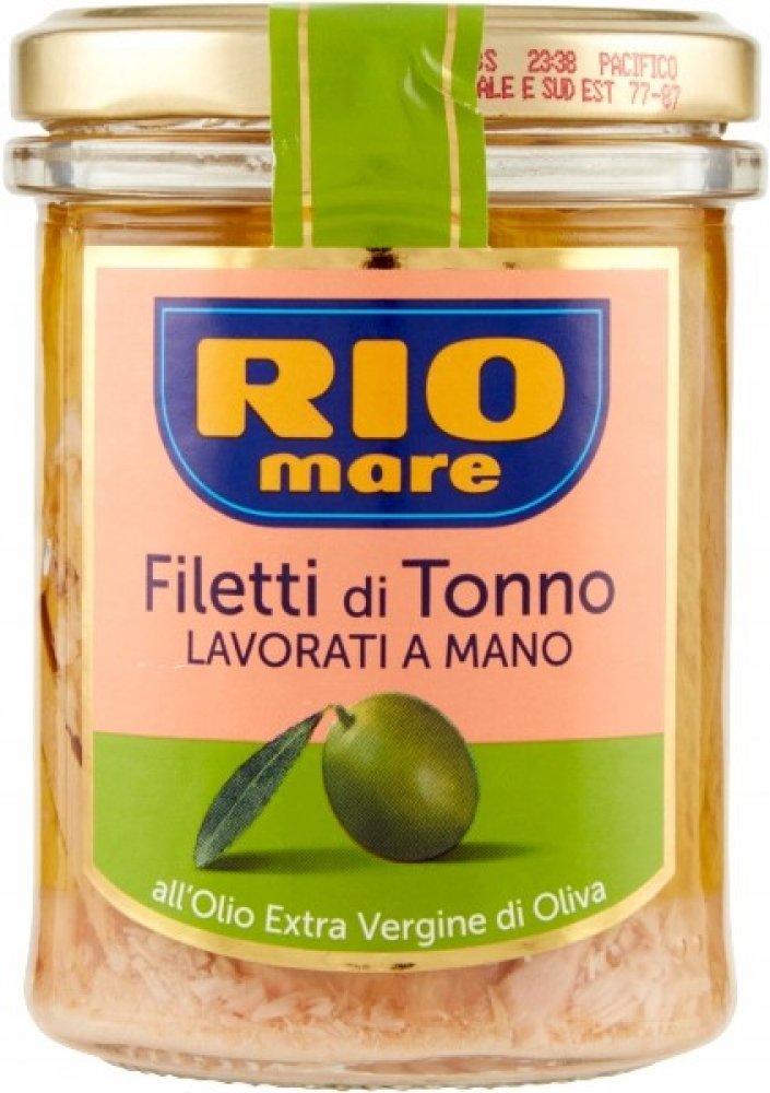 Originální italský tuňák ve velkých kusech zalitý extra vergine olejem. Jedná se o nejvyšší polici produktů značky Rio Mare. Italský výrobek, dovážený z Itálie, určený pro italský trh.