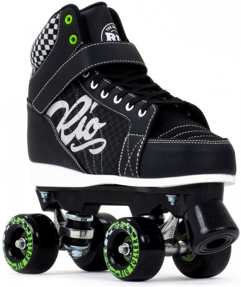 Značka Rio Roller představuje již druhou verzi modelu Mayhem , který se vyrábí téměř od samého začátku celé značky. Nejoblíbenější brusle ze série zůstávají v klasickém retro stylu 90 let. Mayhem II je vyzdoben šachovnicovým vzorem, kontrastními barvami a detaily na různých částech brusle. Tyto rollerderby brusle se staly moderní klasikou i díky ikonickému nápisu Rio z boku bruslí. Brusle patří mezi teniskový typ, jsou stabilnější než podpatkové verze a pohodlnější než vysoké kožené krasobrusle. Díky příjemnému polstrování, klasickým šňůrkám a suchému zipu je noha dokonale obepnuta a drží na svém místě. Celá struktura boty se vám určitě bude líbit, zvláště například když rádi nosíte pohodlné tenisky s vysokým kotníkem. Očka na šňůrky jsou potažena až do nadčlenkové úrovně , takže celé šněrování je možné upravit dle vašich požadavků . Po botou naleznete nylonový podvozek s kovovými trucky, takže i mladší bruslaři nebudou mít problém s celkovou váhou brusle. Svršek boty je vyroben z vegan-friendly PVC umělé kůže, která lze snadno očistit a je hladká na dotek. Uvnitř naleznete vytvarovanou vložku, která ještě více upraví pohodlí během bruslení.a. Pokročilí bruslaři ocení i možnost výměny toe-stopu , který je uchycen jednoduchým šroubem na imbus. Kolečka s vytištěným mají 62mm průměr a točí se na klasických ABEC 7 ložiskách. Technické parametry: Bota a materiál: vegan friendly, bota je typově tenisková, vyrobena z PVC kůže. Kvalitní opora paty a suchý zip pro zpevnění kotníku. Podvozek : Nylon + Hliník, PP vysoce odolný proti nárazům Kolečka : Rio Roller 62mm 82A (při velikosti do 38 jsou kolečka 58mm) - vhodné pro bruslení venku i uvnitř Ložiska : Abec 7 Brzdy : Polyuretanové s upevněním na imbusový klíč