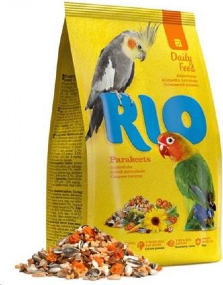 RIO bohatá krmná směs pro střední papoušky jako jsou korely, amazoňan, hrdličky, apod. Je tvořena pestrou skladbou semen a bobulí ze zahrádky, zeleninou i polními plodinami a samozřejmě nezbytným gritem. Strava je velmi chutná, podporuje zdravé trávení, má regenerační účinky a současně poskytuje exotickým ptákům v domácím chovu dostatek všech vitaminů a nezbytných minerálních látek. Je ideální i v období přepeřování či hnízdění, kdy jsou okrasní ptáci náročnější na stravu.