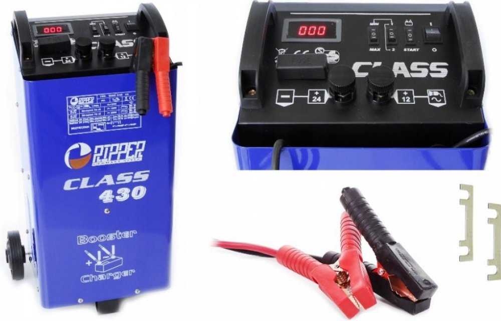 Nabíječka baterií RIPPER CLASS 430 se startovacím zařízením je profesionální zařízení pro nabíjení akumulátorů nákladních automobilů, zemních strojů apod. s možností pomocného startování. Je určena pro olověné akumulátory s napětím 12 V, 24 V a kapacitě od 40 Ah.