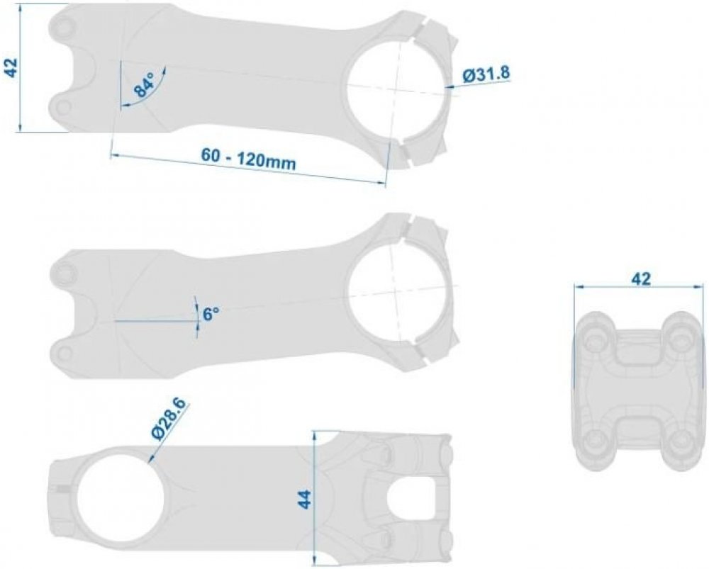 - • Úhel 84°/6° - vhodný pro univerzální nastavení pozice řídítek.