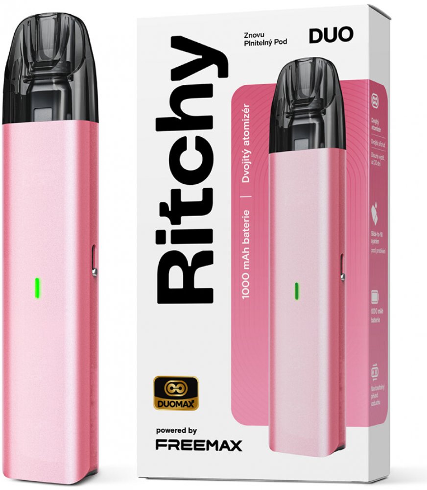 Komfort uživatele podtrhuje automatické spouštění potahem, které nevyžaduje stisk žádného tlačítka, a rychlé nabíjení přes moderní USB-C port doplněné o přehledný tříbarevný RGB indikátor stavu baterie. RITCHY DUO POD je ideálním společníkem pro náročné vapery, kteří požadují nekompromisní výkon, špičkové zpracování a nejlepší chuťový zážitek v kapesním provedení.