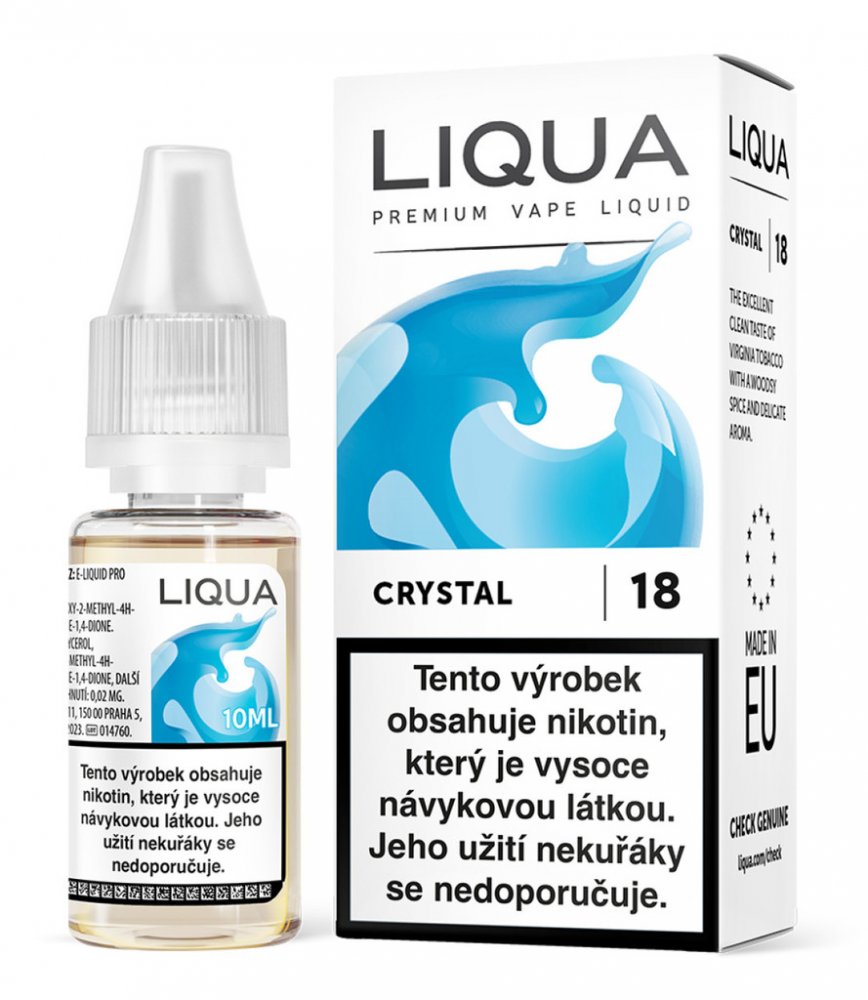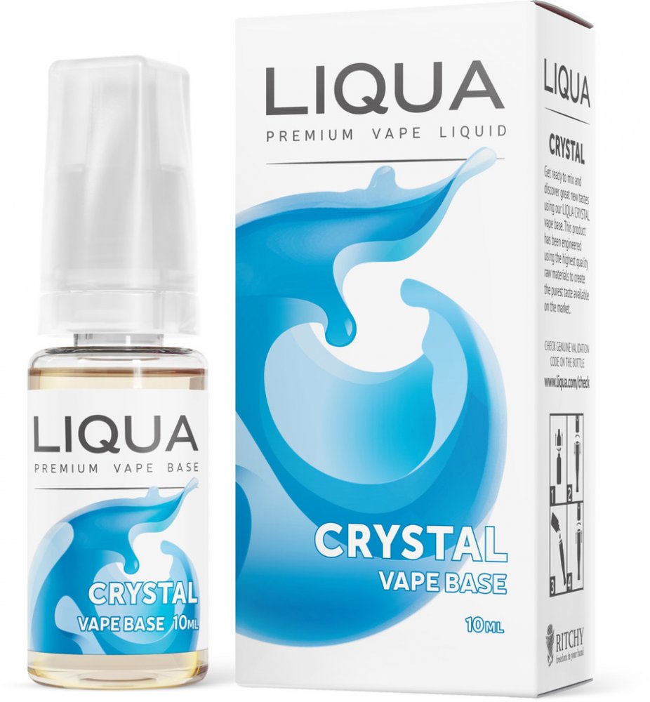 Báze LIQUA Crystal pro vlastní výrobu e-liquidů nebo pro obohacení nikotinem např. 100ml beznikotinové báze a získání tak požadované koncentrace nikotinu. Obsahuje PG (propylen glykol) a VG (rostlinný glycerin) v poměru 50:50. K dochucení báze je zapotřebí použití příchutí nebo již hotového beznikotinového liquidu. Báze jsou bez chuti a zápachu. Při výrobě jsou používány ingredience té nejvyšší kvality.